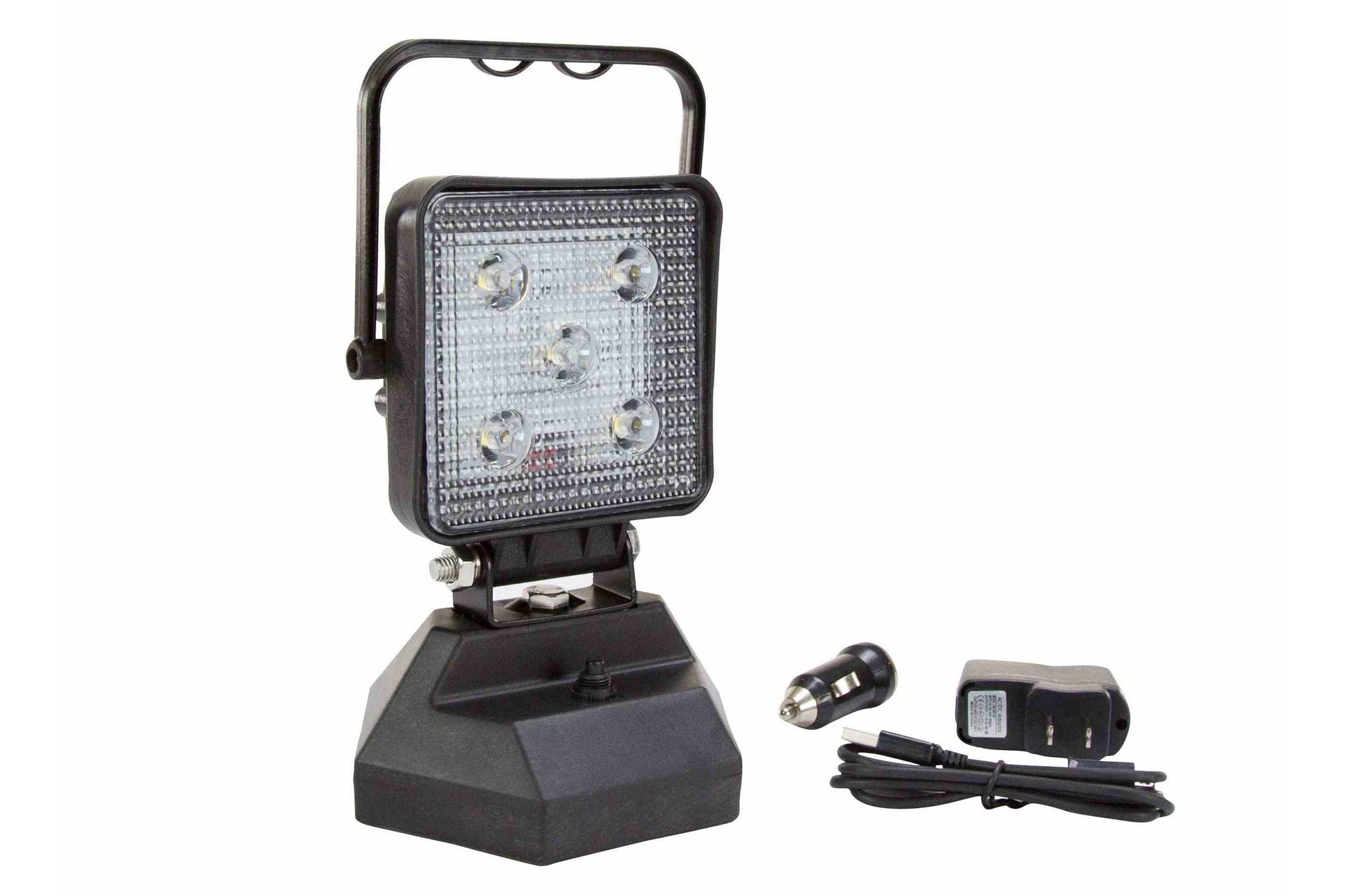 Measuring only 3.22" x 3.14" x 3", the RL-15-LED-CPR from Larson Electronics is an ultra compact portable floodlight that contains five 3 watt high output LEDs that generate 1,100 lumens of cool white light while drawing 15 watts of energy. This lightweight floodlight includes a carrying handle, a rechargeable 3.7V/3600mA lithium battery, and a magnetic base for for quick and easy on-the-go mounting. A uniquely designed articulated light head allows for front to back adjustment over a 180° range. This light is impact and vibration resistant, dustproof, rustproof, and rated IP67 waterproof, making it ideal for the rough conditions encountered in hiking, camping, hunting, and outdoor work areas. Whether used for recreation or work (or a little of both), the RL-15-LED-CPR compact floodlight simply can`t be beat.