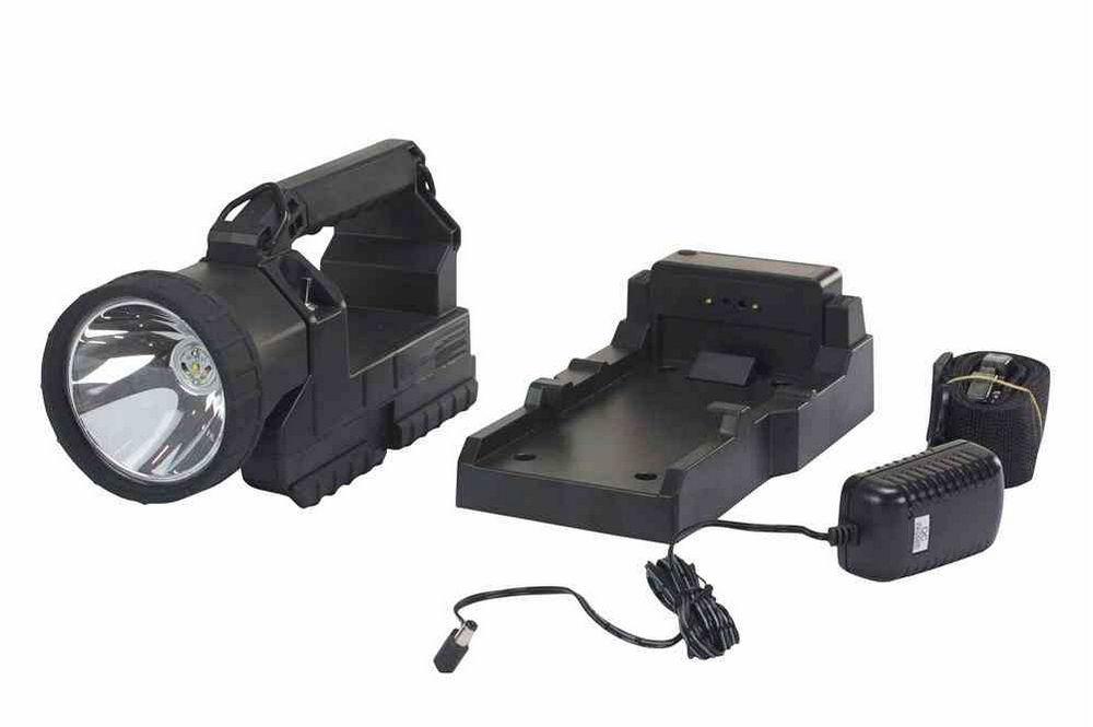 This portable explosion proof lantern is rechargeable and produces a 120,000 candela peak beam intensity reaching over 1,400` in length. This lightweight unit weighs only 2 pounds and is powered by lithium ion batteries that require no special charging procedures and have no charge memory issues. Using the latest lithium ion battery technology allows this unit to be recharged regardless of current charge levels, so there is no need to fully discharge the light before recharging. The battery will hold its charge for 18 months, even when on the shelf. However, the smart charging technology enables the operator to leave the light on the docking station indefinitely.