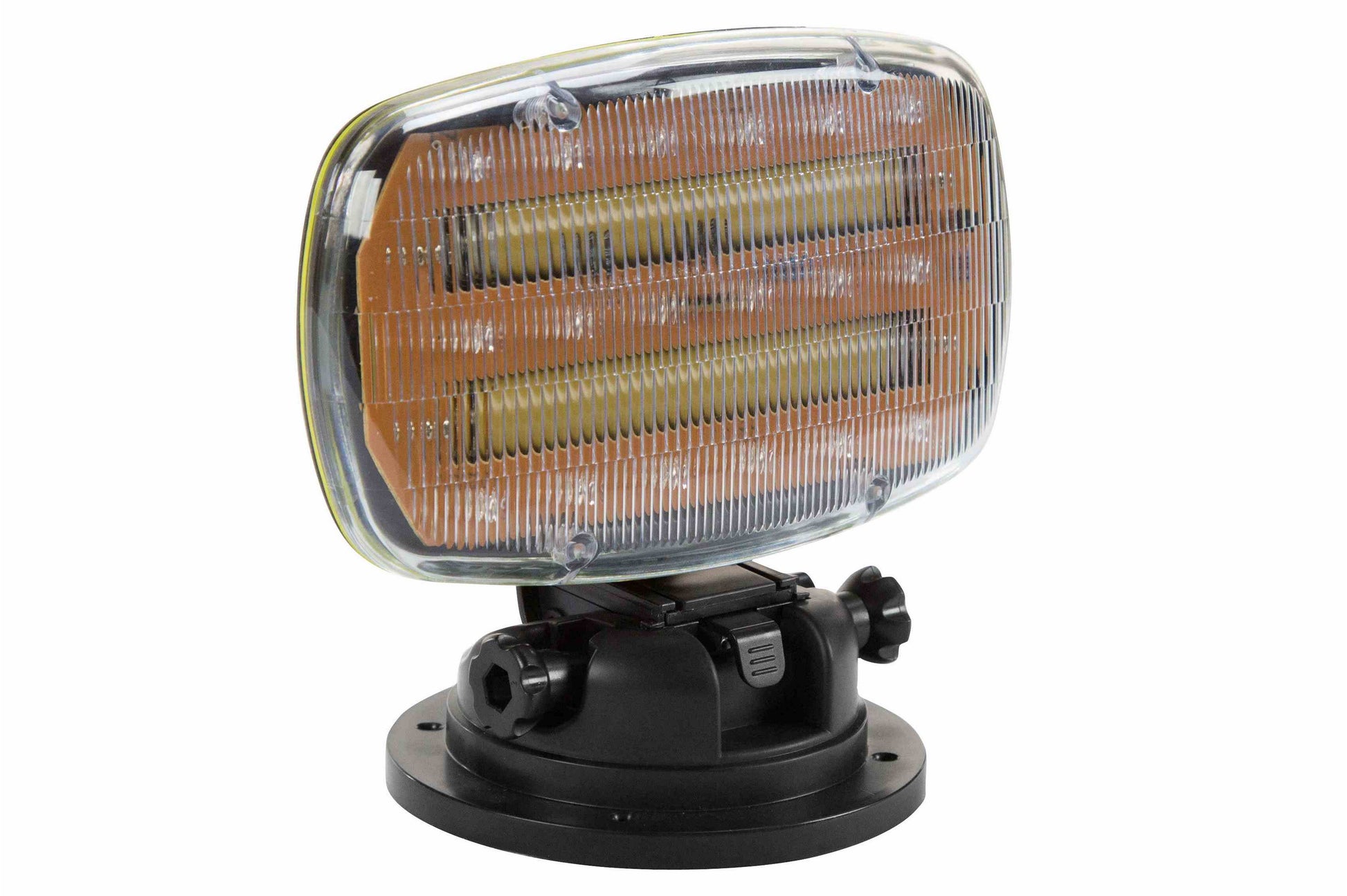 This compact LED beacon contains an 18 LED lamp assembly that produces a brilliant signal visible for extended distances. This LED beacon is white in color and is 100% portable, with a 120 lbs grip magnetic mount and battery operation that allows it to be operated wherever a powerful beacon is needed. The magnetic base includes an adjustable sliding hinge that allows the lamp head to be adjusted from full vertical to almost full horizontal positioning. With no need for wiring or external power sources, this light is ideal for applications where a signal light is needed on an occasional or temporary basis.