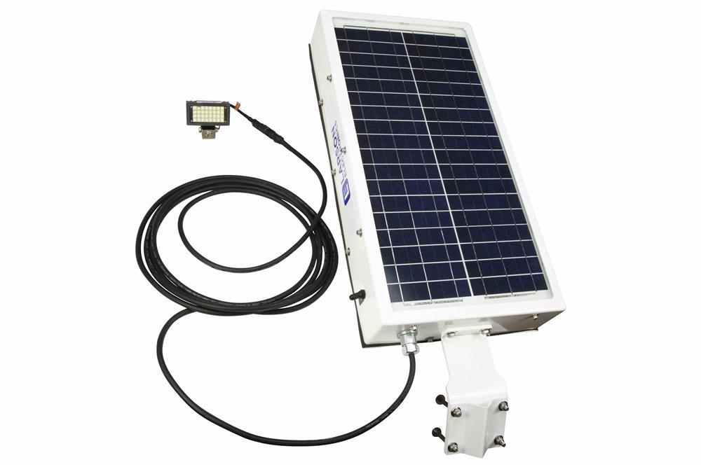 Made in the USA The Larson Electronics SPLED-5-RS Solar Powered LED Light is an ideal lighting solution for remote areas and standalone applications where connection to external power is either impractical or unavailable. This solar powered LED light is fully automatic and powered by one 8aH sealed lead acid battery that is recharged by a 30 watt solar panel. Light output comes from a 5 watt LED lamp that produces 500 lumens. This solar panel is equipped with remote switching capabilities. 20` of SOOW cable connects the light and the panel, with an in-line switch in the middle. This unit is for night time operation, and will not be visible during the day. For a day time visible solar powered lamp, please check out the . The light runs for 15 hours when the battery is fully charged. The sealed lead acid battery pack is contained within the solar panel, not the light. Charging time for the battery is 5 hours when exposed to direct sunlight. As with all solar powered equipment, charging time is affected by the amount of available ambient light. When ambient light levels drop below a certain level, such as on cloudy days, the unit will not recharge. The light produced by the SPELD-5 will cover an area 35’L x 35’W when mounted 12 feet from the ground. Mounting options include the ability to attach the fixture to flat surfaces such as walls or round/square pole mounting such as on flagpoles or structure supports.