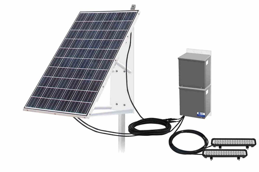 Made in the USA The Larson Electronics SPLEDXL-2X32E-MS-STRB Solar Powered LED Light is an ideal lighting solution for remote areas and standalone applications where connection to external power is either impractical or unavailable. This rechargeable solar powered LED light is offered in a spotlight or floodlight beam pattern, making it ideal for remote applications. For robust illumination, the unit uses two LED strobing lamps, capable of producing 5,760 lumens each of 6000K rated white light. The SPLEDXL-2X32E-MS-STRB features a motion sensor for automated operation. This solar powered LED light is powered by two 250aH sealed lead acid 12V batteries that are recharged by a 265 watt solar panel. Light output comes from two, 96-watt LED lamps (total of 192 watts) producing 5,760 lumens each for a total lumen output of 11,520 lumens. This solar-powered lighting system features a motion sensor that activates the strobing lights upon sensing movement in the area. The sealed lead acid battery pack is contained within the solar panel, not the light. Charging time for the battery is 5 hours when exposed to direct sunlight. As with all solar powered equipment, charging time is affected by the amount of available ambient light. When ambient light levels drop below a certain level, such as on cloudy days, the unit will not recharge. The included 15` 16/2 SOOW cords with Deutsch 2-pin disconnects that run between the solar panel and the lights offer operators convenience and flexibility during the mounting process. Light Features: The LED strobing lights produce 5,760 lumens of bright light each while drawing only 96 watts @ 8 amps from a 12 volt electrical system. With a 6000K color temperature rating, thirty-two Edison Edixeon® Emitters containing CREE EZBright® three-watt LEDs producing 180 lumens each are paired with high purity 10 degree optics to produce a tightly focused spot beam with limited spread or light spillage per light. We also offer optional floodlight versions with 35 degree optics to produce a wider beam spread and more light over a larger area nearer the fixtures, making flood versions ideal for use as work and area lights. These LED light bars are IP68 rated and waterproof to 3 meters, sealed against intrusion by dust and dirt and very ruggedly constructed to withstand the most demanding environments, conditions and applications. The entire Larson Electronics LEDLB-E series are constructed of extruded aluminum and feature heavier housings, rubber isolated mounts and unbreakable polycarbonate lenses to provide increased durability against vibrations, impacts, waves, hard rains, sand and high winds. Durability: The LEDLB-E series of LED light bars from Larson Electronics offer IP68 rated construction that is designed to withstand extremes of environmental and operating conditions. The LED lights with the ‘E’ part number designation are designed for extreme durability and are larger and nearly twice as heavy as their standard counterparts. These units can withstand rapid temperature changes of -40 degrees Celsius to 85 degrees Celsius, are waterproof to three feet and resist ingress of dust, dirt and humidity. The housings are formed from thick extruded aluminum and the lenses are unbreakable polycarbonate. The Edixeon® LEDs offer inherent LED resistance to shocks and vibrations contributing to these units 15.6Grms rating of vibration tolerance. We recommend these LED lights for high stress - high vibratory conditions, high humidity climates, very cold areas and rough saltwater conditions. They are also well suited to environments where equipment is used in one temperature extreme and stored in another temperature extreme. LED Benefits: Unlike gas burning and arc type lamps that have glass bulbs, LEDs have no filaments or fragile housings to break during operation and/or transportation. Instead of heating a small filament or using a combination of gases to produce light, light emitting diodes (LEDs) use semi-conductive materials that illuminate when electric current is applied, providing instant illumination with no warm up or cool down time before re-striking. Because there is no warm up period, this light can be cycled on and off with no reduction in lamp life. LED lights run at significantly cooler temperatures than traditional metal halide and high pressure sodium lights and contain no harmful gases, vapors, or mercury, making them both safer and more energy efficient. No extra energy is wasted in cooling enclosed work areas due to external heat emissions from bulb type lights, and the operator risks associated with traditional lighting methods, such as accidental burns and exposure to hazardous substances contained in the glass bulbs, are eliminated. In addition, LEDs are also safer for the environment as they are 100% recyclable, which eliminates the need for costly special disposal services required with traditional gas burning and arc type lamps. Heat Management: Heat is the single largest factor in premature LED failure and color shifting. These LED units contain advanced drivers which use pulse width modulation to control heat buildup rather than simple voltage regulators which are typically harsh on sensitive electronics and can contribute to early LED failure. These units automatically sense the temperature of each LED and adjust the energy frequency or "duty cycle" accordingly to maintain heat levels within acceptable ranges. This system in essence flashes current at an extremely fast on and off rate to each LED based upon the LED`s core temperature. This flash rate is too fast to detect with the human eye, but provides precise control of the current flowing to each LED and thus the heat it generates. This allows the LEDs to be driven at up to 100% capacity without overheating or visible loss of light output. The LEDs are always driven at the same voltage but the duty cycle, however, is changed to alter how long the LEDs are actually on or off. The end result 