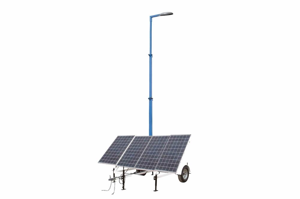 1.2 kW Portable Solar Powered LED Street Light - 30' Tower - 7.5' Trailer - (4) Panels, (1) LED Light, Batteries/BC - Backup Generator