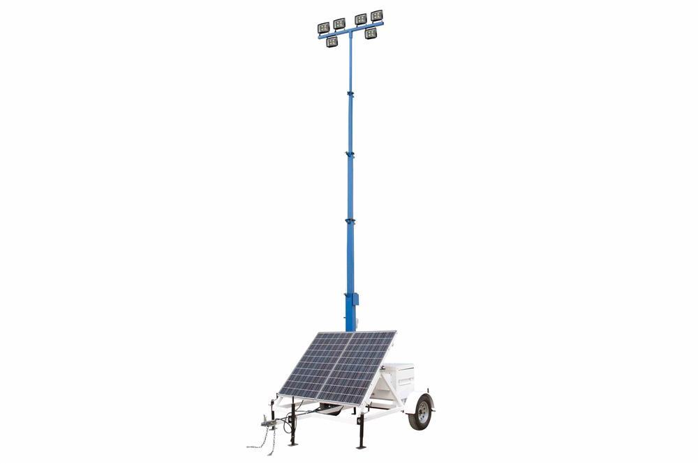 300W Solar Light Tower - 30' Light Tower - 7.5' Trailer - (6) 50W Lamps - Backup LPG Generator