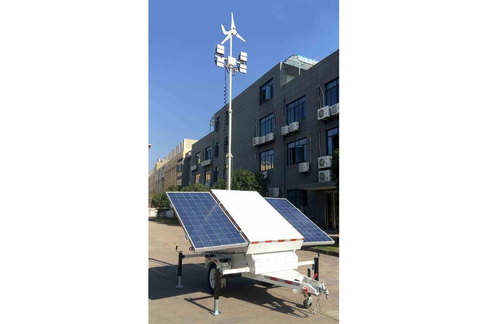 The Larson Electronics SPLT-.6K-LM21-RB-8X150AH-4X10L-CPR-WG Solar LED Light Tower offers wide-area illumination in outdoor locations from elevated positions up to 21.3`. This unit features two, 300-watt solar panels, four 50-watt LED fixtures for illumination, eight 150aH gel batteries (1,200aH capacity) and a solar controller. The entire assembly is secured on a single-axle trailer. Constructed of aluminum alloy, the solar light mast provides a runtime of 26 hours per full charge. Operators can position the tower in various positions, via the rotating mast, and access a 400-watt wind generator mounted 2` above the LED light heads. *PLEASE NOTE: ANY FREE SHIPPING OFFERS DO NOT APPLY TO LIGHT MASTS OR LIGHT TOWERS* This solar LED light tower is a portable, powerful lighting solution for outdoor locations. The unit is equipped with two 300-watt solar panels, four 50-watt LED fixtures, eight 150aH gel batteries, Morningstar PS-30 controller, 400-watt wind generator and a sturdy junction box. All components are mounted on a single-axle trailer. The rotating light mast extends up to 21.3 feet. LED Fixtures: The SPLT-.6K-LM21-RB-8X150AH-4X10L-CPR-WG features four, 50-watt LED fixtures for illumination. The LED units operate on 24V DC and provide 7,000 lumens of white light (1,750 lumens per lamp) with a color temperature rating of 5,000K. Constructed of die-cast aluminum, the LED fixtures are suitable for wide-area illumination in outdoor locations. LED Benefits: Unlike gas burning and arc type lamps that have glass bulbs, LEDs have no filaments or fragile housings to break during operation and/or transportation. Instead of heating a small filament or using a combination of gases to produce light, light emitting diodes (LEDs) use semi-conductive materials that illuminate when electric current is applied, providing instant illumination with no warm up or cool down time before re-striking. Because there is no warm up period, this light can be cycled on and off with no reduction in lamp life. LED lights run at significantly cooler temperatures than traditional metal halide and high pressure sodium lights and contain no harmful gases, vapors, or mercury, making them both safer and more energy efficient. No extra energy is wasted in cooling enclosed work areas due to external heat emissions from bulb type lights, and the operator risks associated with traditional lighting methods, such as accidental burns and exposure to hazardous substances contained in the glass bulbs, are eliminated. In addition, LEDs are also safer for the environment as they are 100% recyclable, which eliminates the need for costly special disposal services required with traditional gas burning and arc type lamps. Light Mast: This telescoping four-stage aluminum light mast from Larson Electronics is designed to allow operators to quickly and safely deploy a reliable lighting system in locations where it must be elevated to heights up to 21.3` for effective coverage. The tower is constructed of round aluminum alloy tubing. The mast is extended to its full height using a manual lifting system. Junction boxes are mounted at the top of the first stage and at the very top of the mast for equipment setup, connection, and deployment. When elevated to its full upright position, the mast can be rotated a full 360°. By loosening the T-Handle, operators can rotate the mast with ease in either direction. The mast can be positioned in one of four different positions, and locked back in place by re-tightening the T-handle. The mast itself spins freely with ease, and can typically be rotated with a single hand. Wind Generator: The SPLT-.6K-LM21-RB-8X150AH-4X10L-CPR-WG comes with a wind generator, which is mounted 2 feet above the LED light heads for maximum exposure. Rated at 400 watts, the unit operates on 12V DC and features a rated speed of 28 mph. A total of three, 4-foot rotor blades can be found on the generator. Cut-in wind speed requirements are low, at 6.7 mph. This unit features a built-in charge controller. Solar Panels/Batteries: This unit is comprised of two 300-watt solar panels, with a 30-degree tilt for optimized sunlight exposure. The panels are wired to the solar charger control box which manages the charging system. A 24V DC Morningstar PS-30 controller, with a maximum PV open current/voltage protection of 30A/60V, manages power storage and allocation between the solar panels and batteries. The SPLT-.6K-LM21-RB-8X150AH-4X10L-CPR-WG features a total of eight, 150aH gel deep cycle lead-acid batteries to store power. The power cells come with 300aH usable capacity and an expected lifespan range of 5-7 years. Component Control Center: All the electrical components are encapsulated in a NEMA 3R job box that is bolted to the trailer. Since most of these components are not rated for high heat, our component cooling system circulates air within the job box at 1400 CFM when the ambient temperature exceeds 90 degrees Fahrenheit. The job box that contains the component control system includes locks for security purposes. Trailer Assembly: The entire assembly measures 11` 9.75" x 11.25" x 8` 2" and is secured on a single-axle trailer with 185R/14C tires/rims. The trailer tongue can be removed for long-term deployment. A rugged and waterproof job box is included, safely secured to the trailer. Four outriggers mounted to the corners of the trailer allow operators to level the trailer, and provide stabilization during deployment. All trailer lighting complies with US DOT regulations. Applications: Security, monitoring, live events, concerts, law enforcement, military, commercial, industrial facilities, outdoor surveillance, outdoor illumination, remote locations and more.