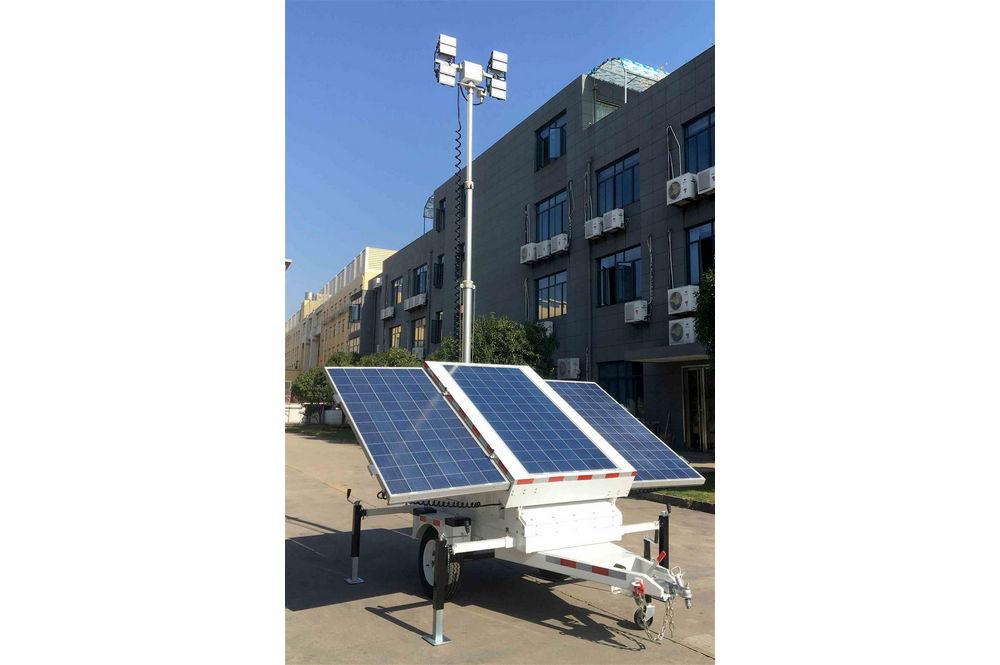 The Larson Electronics SPLT-.9K-LM21-RB-8X150AH-4X10L-EU-CPR Solar LED Light Tower offers wide-area illumination in outdoor locations from elevated positions up to 21.3`. This unit features three, 300-watt solar panels, four 50-watt LED fixtures for illumination, eight 150aH gel batteries (1,200aH capacity) and a solar controller. The entire assembly is secured on a single-axle trailer. Constructed of aluminum alloy, the solar light mast provides a runtime of 26 hours per full charge. Operators can position tower in various positions, via the rotating mast. For towing on local European roads, the trailer is designed to comply with EU road standards. *PLEASE NOTE: ANY FREE SHIPPING OFFERS DO NOT APPLY TO LIGHT MASTS OR LIGHT TOWERS* This solar LED light tower is a portable, powerful lighting solution for outdoor locations. The unit is equipped with three 300-watt solar panels, four 50-watt LED fixtures, eight 150aH gel batteries, Morningstar PS-30 controller and a sturdy junction box. All components are mounted on a single-axle trailer. The rotating light mast extends up to 21.3 feet. LED Fixtures: The SPLT-.9K-LM21-RB-8X150AH-4X10L-EU-CPR features four, 50-watt LED fixtures for illumination. The LED units operate on 24V DC and provide 7,000 lumens of white light (1,750 lumens per lamp) with a color temperature rating of 5,000K. Constructed of die-cast aluminum, the LED fixtures are suitable for wide-area illumination in outdoor locations. LED Benefits: Unlike gas burning and arc type lamps that have glass bulbs, LEDs have no filaments or fragile housings to break during operation and/or transportation. Instead of heating a small filament or using a combination of gases to produce light, light emitting diodes (LEDs) use semi-conductive materials that illuminate when electric current is applied, providing instant illumination with no warm up or cool down time before re-striking. Because there is no warm up period, this light can be cycled on and off with no reduction in lamp life. LED lights run at significantly cooler temperatures than traditional metal halide and high pressure sodium lights and contain no harmful gases, vapors, or mercury, making them both safer and more energy efficient. No extra energy is wasted in cooling enclosed work areas due to external heat emissions from bulb type lights, and the operator risks associated with traditional lighting methods, such as accidental burns and exposure to hazardous substances contained in the glass bulbs, are eliminated. In addition, LEDs are also safer for the environment as they are 100% recyclable, which eliminates the need for costly special disposal services required with traditional gas burning and arc type lamps. Light Mast: This telescoping four-stage aluminum light mast from Larson Electronics is designed to allow operators to quickly and safely deploy a reliable lighting system in locations where it must be elevated to heights up to 21.3` for effective coverage. The tower is constructed of round aluminum alloy tubing. The mast is extended to its full height using a manual lifting system. Junction boxes are mounted at the top of the first stage and at the very top of the mast for equipment setup, connection, and deployment. When elevated to its full upright position, the mast can be rotated a full 360°. By loosening the T-Handle, operators can rotate the mast with ease in either direction. The mast can be positioned in one of four different positions, and locked back in place by re-tightening the T-handle. The mast itself spins freely with ease, and can typically be rotated with a single hand. Solar Panels/Batteries: This unit is comprised of three 300-watt solar panels, with a 30-degree tilt for optimized sunlight exposure. The panels are wired to the solar charger control box which manages the charging system. A 24V DC Morningstar PS-30 controller, with a maximum PV open current/voltage protection of 30A/60V, manages power storage and allocation between the solar panels and batteries. The SPLT-.9K-LM21-RB-8X150AH-4X10L-EU-CPR features a total of eight, 150aH gel deep cycle lead-acid batteries to store power. The power cells come with 300aH usable capacity and an expected lifespan range of 5-7 years. Component Control Center: All the electrical components are encapsulated in a NEMA 3R job box that is bolted to the trailer. Since most of these components are not rated for high heat, our component cooling system circulates air within the job box at 1400 CFM when the ambient temperature exceeds 90 degrees Fahrenheit. The job box that contains the component control system includes locks for security purposes. Trailer Assembly: The entire assembly measures 11` 9.75" x 11.25" x 8` 2" and is secured on a single-axle trailer with 185R/14C tires/rims. The trailer tongue can be removed for long-term deployment. A rugged and waterproof job box is included, safely secured to the trailer. Four outriggers mounted to the corners of the trailer allow operators to level the trailer, and provide stabilization during deployment. All trailer lighting complies with European road standards. Note: The trailer`s lighting components (brakes, turning and fog lights) complies with European road standards, which allows operators to use the trailer for towing on local, European roads. Applications: EU roads, security, monitoring, live events, concerts, law enforcement, military, commercial, industrial facilities, outdoor surveillance, outdoor illumination, remote locations and more.