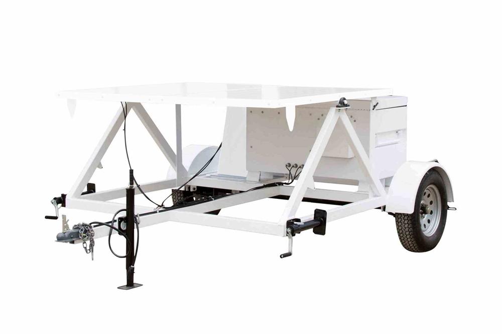 | Made in the USA The Larson Electronics SPLT-xx-TLR-V1 Solar Light Tower Trailer is designed for seamless solar panel deployment in outdoor sites. A spacious trailer bed with a 4' trailer tongue, A-frame with pillow blocks, heavy-duty job box and low voltage cooling fans are included with this unit. The two-wheel trailer is fully customizable to meet specific project and system requirements of customers. The SPLT-xx-TLR-V1 offers mobility and security when deploying solar panels in remote locations. This unit consists of a 6.5' wide by 7' long trailer bed, a 4' long trailer tongue, an A-frame with pillow block, outdoor job box and 12V cooling fans. The two-wheel trailer is equipped with heavy-duty axle and leaf springs with tires. Four outriggers mounted to the corners of the trailer allow operators to level the trailer, and provide stabilization during deployment. Operators can mount their solar panels in upright positions on the A-frame. Included pillow blocks ensure secure panel mounting and allows the frames to pivot safely while adjusting the angle of the panels. Customer-provided electrical components can be protected by an included outdoor job box, which measures 48" x 24" x 36". This enclosure is designed to hold solar chargers, batteries, timers, meters and other essential system components that requires protection from outdoor elements. Operators can mount other equipment to the side of the job box, such as generators and masts. In addition to the job box, the SPLT-xx-TLR-V1 comes with 12V cooling fans. |