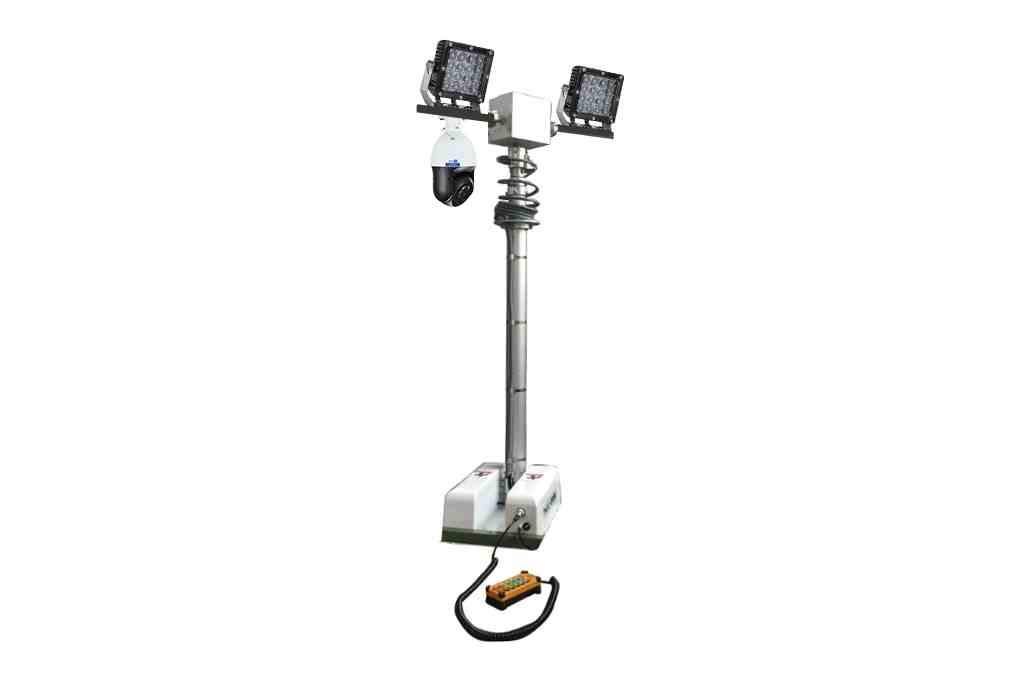 The LED light heads and camera are mounted on a pneumatic mast for elevated illumination, up to 13.5 feet. Operators may increase the height of the device using a wireless or wired remote control. Powering the portable mast is a 12V DC power supply that is a lead-acid battery. For complete coverage of the environment, the pneumatic mast is capable of rotating 360 degrees, horizontally and vertically. This unit is constructed of sturdy aluminum.