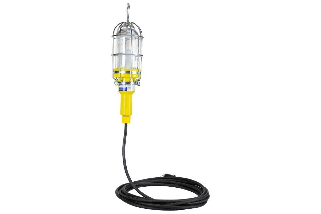 The 10 watt LED lamp used in this unit produces nearly 3 times the illumination of incandescent lamps as measured in foot candles, at less than 1/10th of the electricity usage and without the associated heat. Unlike traditional lighting that require colored lenses or special coatings, the LED bulb in this drop light produces uses high output colored LEDs, providing a brighter and more durable inspection light. This LED drop light runs at operating temperatures of 55°F, greatly reducing the chances of accidents or burns commonly associated with incandescent drop lights. This lamp has no ballast, which reduces lamp weight, a steel globe guard, and a stainless steel hook for easy overhead mounting. The solid state LED bulb has no filament, making it resistant to damage from impacts and dropping.