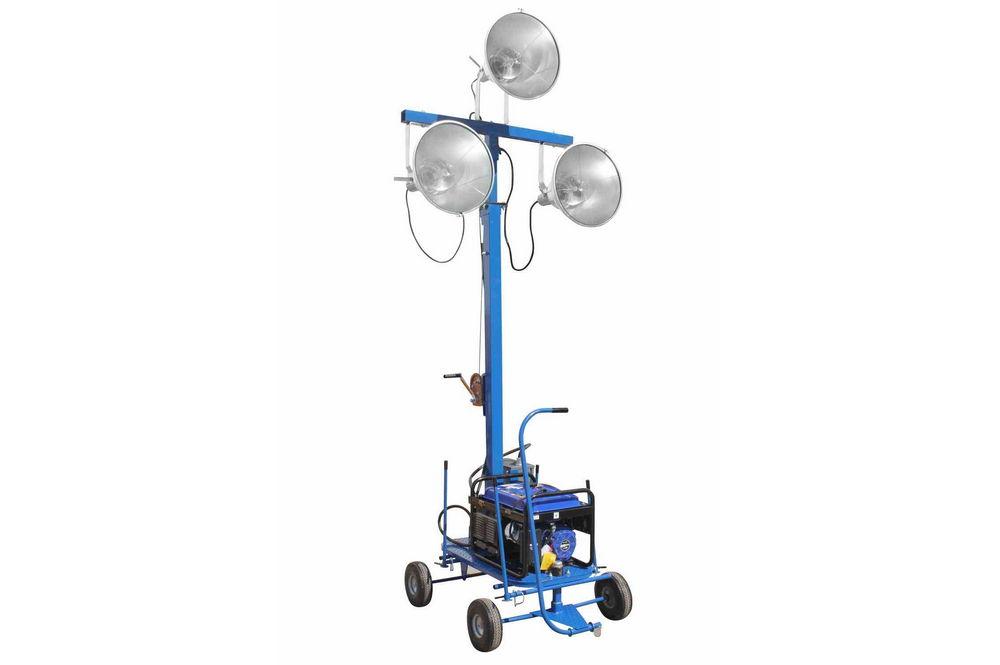 The WAL-ML-3XM-3G Mini light tower is a portable lighting system designed for stand alone operation and high mobility while providing enough output to illuminate approximately 3 acres of area effectively. Equipped with a heavy duty adjustable height tower, 7 horsepower generator, and three 1000 watt metal halide lamps, this mini tower provides operators with an easily deployed lighting system that can provide large scale illumination for up to 5 hours on a single tank of gas.