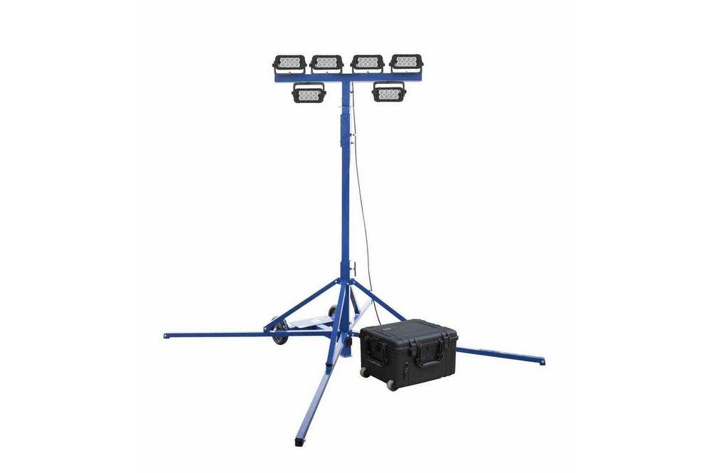 Buy American Compliant The Larson Electronics WAL-QP-RPS-6XLED-8E-IR Portable Infrared LED Tower is a superior infrared lighting solution for rugged environments. This unit features six LED emitters (4 top, 2 bottom) mounted on a quadpod, which is capable of reaching heights between 7` and 12`. The LED lamps are powered by a rechargeable lithium-ion battery pack, which provides a runtime of 12 hours when fully charged. Infrared wavelength options include: 750 nm, 850 nm or 940 nm. The WAL-QP-RPS-6XLED-8E-IR offers powerful infrared illumination in various positions and elevations. Consisting of four infrared LED emitters on top and two at the bottom (total of six LED lamps), the battery-powered unit produces 8,640 lumens and consumes 144 watts during operation. The top four infrared LED lamps emit a flood beam configuration, capable of reaching 500`. The bottom two units emit a spot beam configuration, capable of reaching 1,000`. All LED lamps can be adjusted vertically or horizontally and support independent operation. This infrared LED light tower is powered by a rechargeable lithium-ion battery pack. In a fully charged state, the power cells can sustain all six lamps for 12+ hours. The 160aH battery pack comes with an integrated charger and a rugged travel case. Unlike low-quality infrared LED lamps on the market today, these infrared lights support native infrared features. As a result, cut-off filters are not needed and reliability is greatly enhanced. LED Benefits: Unlike gas burning and arc type lamps that have glass bulbs, LEDs have no filaments or fragile housings to break during operation and/or transportation. Instead of heating a small filament or using a combination of gases to produce light, light emitting diodes (LEDs) use semi-conductive materials that illuminate when electric current is applied, providing instant illumination with no warm up or cool down time before re-striking. Because there is no warm up period, this light can be cycled on and off with no reduction in lamp life. LED lights run at significantly cooler temperatures than traditional metal halide and high pressure sodium lights and contain no harmful gases, vapors, or mercury, making them both safer and more energy efficient. No extra energy is wasted in cooling enclosed work areas due to external heat emissions from bulb type lights, and the operator risks associated with traditional lighting methods, such as accidental burns and exposure to hazardous substances contained in the glass bulbs, are eliminated. In addition, LEDs are also safer for the environment as they are 100% recyclable, which eliminates the need for costly special disposal services required with traditional gas burning and arc type lamps.