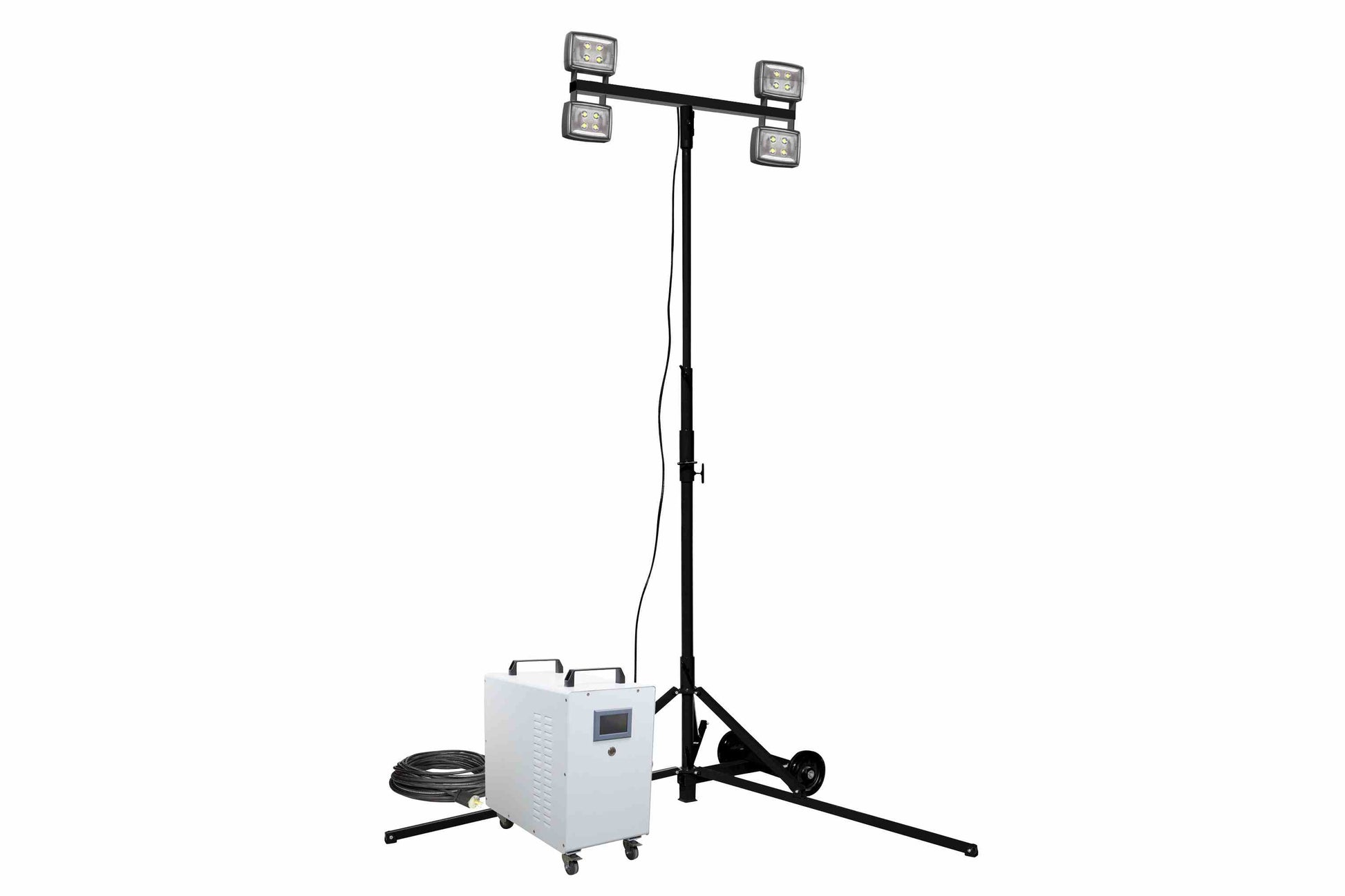 Larson 200W Rechargeable LED Tripod Light - 7' to 12' - (4) Lamps - 4kWh Li-ion Battery - 12+ Hrs Runtime