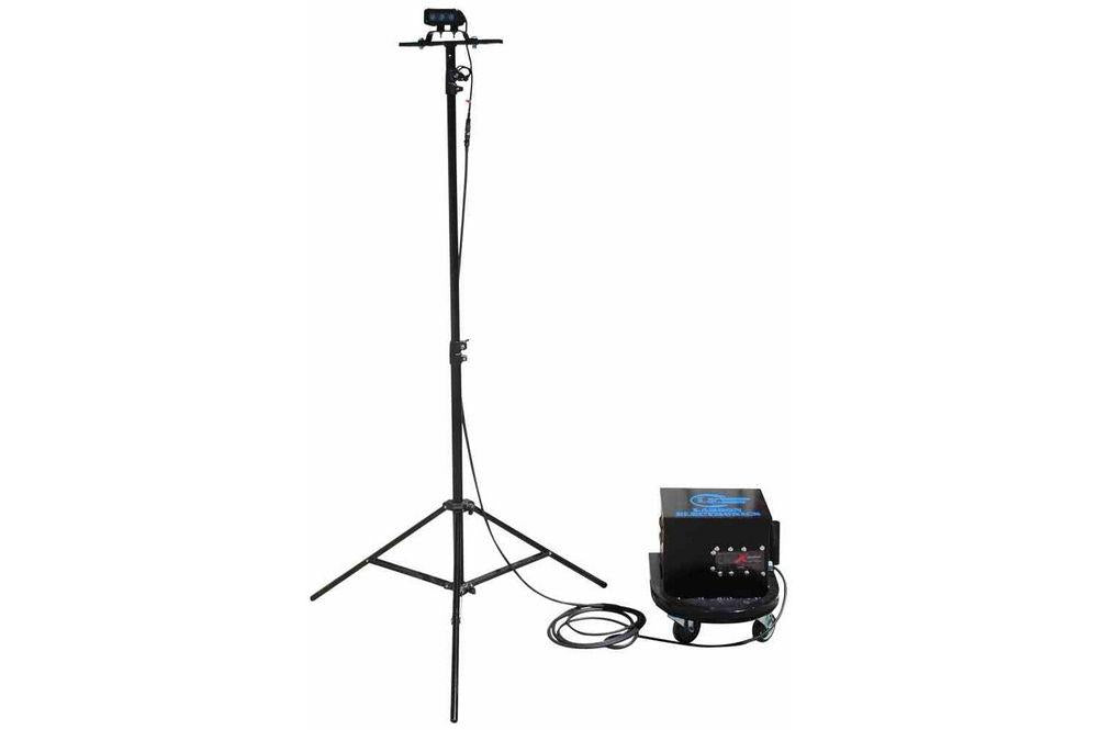 Portable Rechargeable LED Lighting System - Tripod Mounted - Wheeled Battery Pack Stool