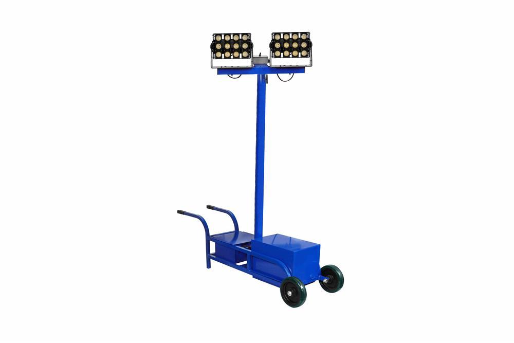 1.Heavy duty aluminum cart and extension pole construction. 2. Led lamp head requires no lamping and simply slides on the cart and is locked into place with a hand tightened set screw. 3. No ballast box. No ballast to replace. 4. Extreme long life LEDs reduce maintenance and replacement costs. 5. Solid rubber tires. No flats or tube replacements. 6. LED Light Output Comparable to (2) 400 Watt Metal Halides. 8. 27,000 Lumens produced from only 200 watts. 9. Mercury free shock proof LED lamp light head. 10. Rechargeable battery bank for cordless operation. 1. 80,000+ hour lifespan. 2. Can SAVE 50% or more on energy. 3. 100% recyclable. 4. No toxins-lead, mercury. 5. No UV light, infrared radiation or CO2 emissions. 6. Bright, even light maintains consistent color over time. 7. Instant on/off – No flickering, delays or buzzing. 8. Very good color rendering. 9. Vibration/impact resistant. 10. Significantly cooler operation. 11. Less frequent outages, higher output improves workplace safety.