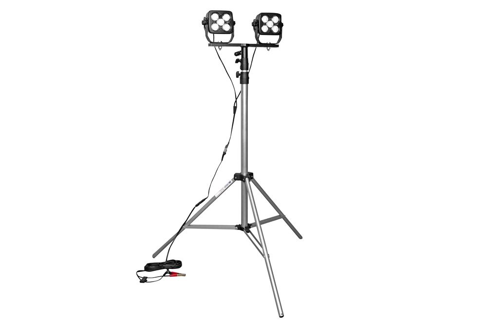 | The WAL-TP-2X50E-12.2-100C-1224 from Larson Electronics is a Tripod Mounted Dual LED Work Light that offers a portable and convenient source of high-intensity LED light. This tripod mounted worklight produces 4,300 lumens from each LED light head for a total output of 8,600 lumens. This unit is equipped with a low voltage power cord that is detachable for storage and transportation. The WAL-TP-2X50E-12.2-100C-1224 is equipped with 100' of 12/2 SOOW cord terminated in a choice of connection styles. The WAL-TP-2X50E-12.2-100C-1224 dual LED tripod mounted work light features two of the Larson Electronics LED spotlights. Each LEDP10W-50E LED light from Larson Electronics produces 4300 lumens of bright light while drawing 4.17 amps from a 12 volt electrical system. Five 10 watt LEDs each producing 860 lumens are paired with high purity optics to produce a 20 degree spread spot beam approximately 525' long by 75' in width. We also offer floodlight versions with a 40 degree beam spread to provide more light over a larger area nearer the fixture, making flood versions ideal for use as work lights. These LED light bars are waterproof to 3 meters, sealed against intrusion by dust and dirt, and very ruggedly constructed to withstand the most demanding environments, conditions and applications. This particular unit is ultra compact with dimensions of 4.68"L x 4.3"H x 3.5"D. An integral Pulse Width Modulation controller, small profile, low power requirements, high durability and versatile mounting system makes these LED light emitters a superior lighting solution for a wide array of applications including but not limited to: military, industrial manufacturing, machine visioning, security and law enforcement, boating, vehicles and commercial structure illumination. LED Benefits: Unlike gas burning and arc type lamps that have glass bulbs, LEDs have no filaments or fragile housings to break during operation and/or transportation. Instead of heating a small filament or using a combination of gases to produce light, light emitting diodes (LEDs) use semi-conductive materials that illuminate when electric current is applied, providing instant illumination with no warm up or cool down time before re-striking. Because there is no warm up period, this light can be cycled on and off with no reduction in lamp life. LED lights run at significantly cooler temperatures than traditional metal halide and high pressure sodium lights and contain no harmful gases, vapors, or mercury, making them both safer and more energy efficient. No extra energy is wasted in cooling enclosed work areas due to external heat emissions from bulb type lights, and the operator risks associated with traditional lighting methods, such as accidental burns and exposure to hazardous substances contained in the glass bulbs, are eliminated. In addition, LEDs are also safer for the environment as they are 100% recyclable, which eliminates the need for costly special disposal services required with traditional gas burning and arc type lamps. Heat Management: Heat is the single largest factor in premature LED failure and color shifting. These LED units contain advanced drivers which use pulse width modulation to control heat buildup rather than simple voltage regulators which are typically harsh on sensitive electronics and can contribute to early LED failure. These units automatically sense the temperature of each LED and adjust the energy frequency or "duty cycle" accordingly to maintain heat levels within acceptable ranges. This system in essence flashes current at an extremely fast on and off rate to each LED based upon the LED`s core temperature. This flash rate is too fast to detect with the human eye, but provides precise control of the current flowing to each LED and thus the heat it generates. This allows the LEDs to be driven at up to 100% capacity without overheating or visible loss of light output. The LEDs are always driven at the same voltage but the duty cycle, however, is changed to alter how long the LEDs are actually on or off. The end result is more light with less heat and longer LED life with an average 70% lumen maintenance after 50,000 hours. PWM Control: The pulse width modulation drivers in this unit also provide secondary benefits through the ability to tap into a provided input wire with an external pulse generator and adjust the duty cycle of the current being applied to the LEDs. Thus you can connect an external dimmer, switch, or pulse control and adjust the perceived output of the light, effectively causing the light to flash, dim or brighten to the desired levels. Additionally, this method of controlling light output results in a corresponding drop in amperage draw, so if the duty cycle is cut back to 50% there will be a matching 50% reduction in amperage draw. These units are also able to monitor and adjust input current to maintain the correct LED voltage levels regardless of input levels across a specific range. These LEDP10W series light bars can operate on current ranging from 9 to 46VDC without any modifications necessary as a result. This ability to sense and adjust input current also provides protection against voltage spikes and drops that can occur in vehicle electrical systems which would otherwise result in burning up or premature LED failure without it. Durability: As well as unparalleled heat control, the LEDP10W series of LED light bars from Larson Electronics also offer IP68 rated construction that is designed to withstand extremes of environmental and operating conditions. These units can withstand rapid temperature changes of -40 degrees Celsius to 85 degrees Celsius, are waterproof to three meters, and resist ingress of dust, dirt and humidity. The housings are formed from extruded aluminum and the lenses are unbreakable polycarbonate. The Cree XLamp MC-E® LEDs offer resistance to shocks and vibrations and are rated at 70% lumen maintenance after 50,000 hours of use. Wiring: The WAL-TP-2X50E-12