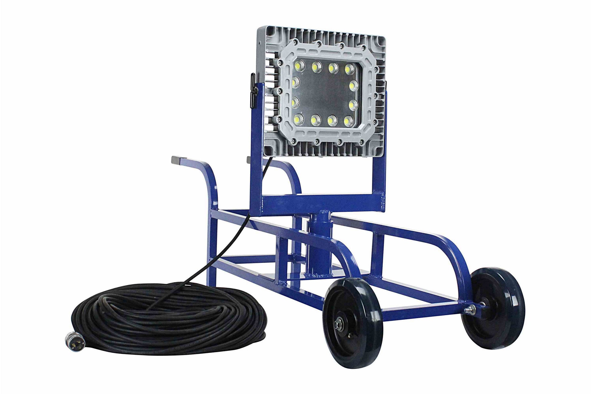 Included with this LED light cart is 200 feet of SOOW cord which combined with adjustability offered by the LED light heads provides ample length for cart placement and optimal coverage of the workspace.