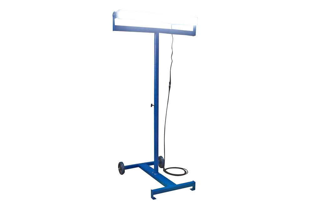 The WALPC-4.7-48-160W-LED-25 from Larson Electronics is a Mobile LED Light Stand w/ Wheels that is designed for portable lighting in industrial facilities. This compact unit is mounted on an aluminum stand with wheels that raises the included light fixture four feet high for quick deployment and transportation to various locations around the work site. The 160-watt LED lamp offers brilliant light output of 19,200 lumens with a 160-degree beam angle configuration. The WALPC-4.7-48-160W-LED-25 also includes a stand extension bar that allows operators to lift the light up to seven feet above the ground when installed.