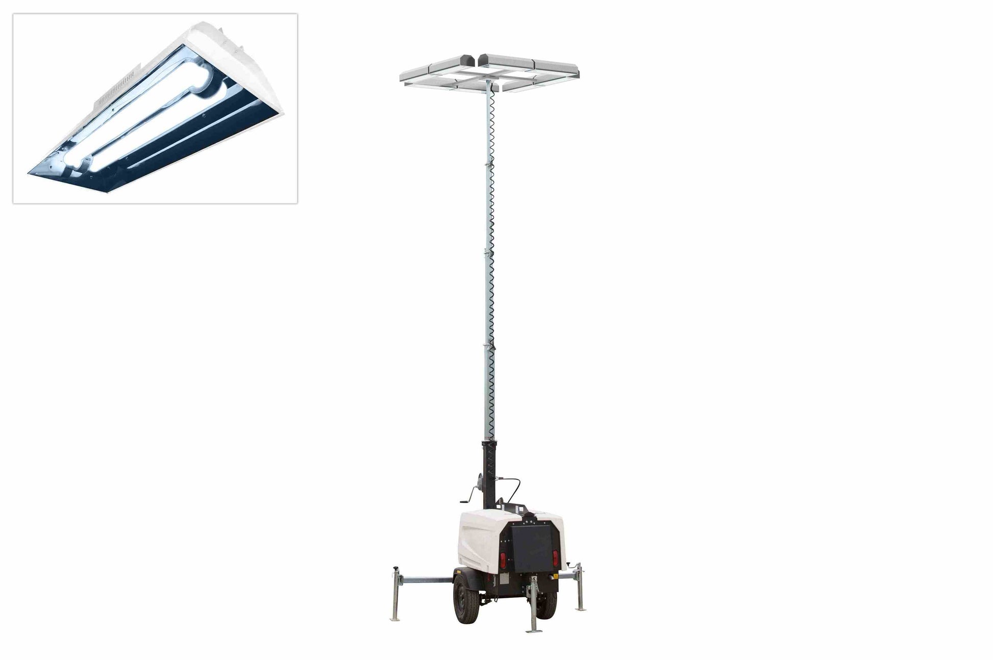 Larson 30' Portable Grow Light Tower - 14' to 30' Mast - (8) Magnetic Induction Lamps, Blue/Red Spectrum - Diesel Generator