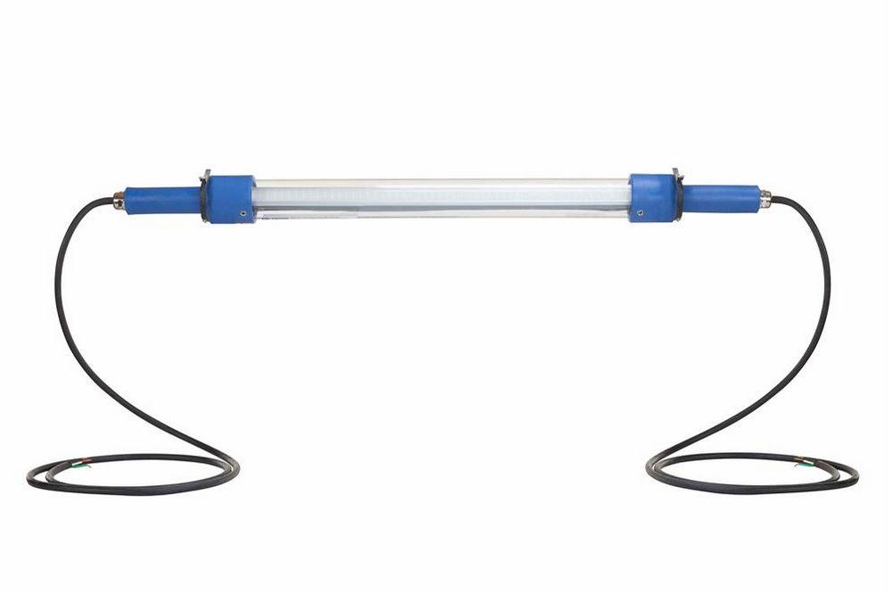 Made in Texas Providing 1,750 lumens of clean, crisp white light with a CRI of 80 and a color temperature of 5600K, the WDL-24-1L-SS-V2-2X6FT linear LED light from Larson Electronics clearly and directly illuminates work areas while eliminating dark spots and shadows, making it ideal for work environments where bright uniform light and excellent color rendering are crucial to completing tasks safely. With an impact and shock resistant no-glass, polycarbonate T8 LED bulb, sealed polycarbonate end caps, 304 stainless steel mounting brackets, Delrin clamps, and stainless steel mounting hardware, this IP66 rated waterproof linear LED light is unrivaled in providing reliable, stable lighting under even the harshest of conditions. The WDL-24-1L-SS-V2-2X6FT linear light consists of one 14 watt T8 tube style LED bulb that draws 0.23 amps at 120 volts AC, polycarbonate end caps, and stainless steel brackets for mounting. Because the LED assembly is a self-contained lighting fixture in itself and requires no additional housing, this unit is ultra compact and low profile. Instead of using a fragile glass bulb as with traditional fluorescent lighting, the housing on this LED fixture is made of impact and shock resistant polycarbonate, making it a much safer and more durable option than fluorescent bulbs. The WDL-24-1L-SS-V2-2X6FT Linear LED Light is the ideal replacement for outdated traditional fluorescent fixtures. While fluorescents require additional space for a ballast, contain fragile glass bulbs, and are notorious for annoying flickering and slow start up times, LED fixtures require no ballast, take up less space, provide instant full power illumination, and project a stable, no-flicker beam from a durable solid state lighting source.