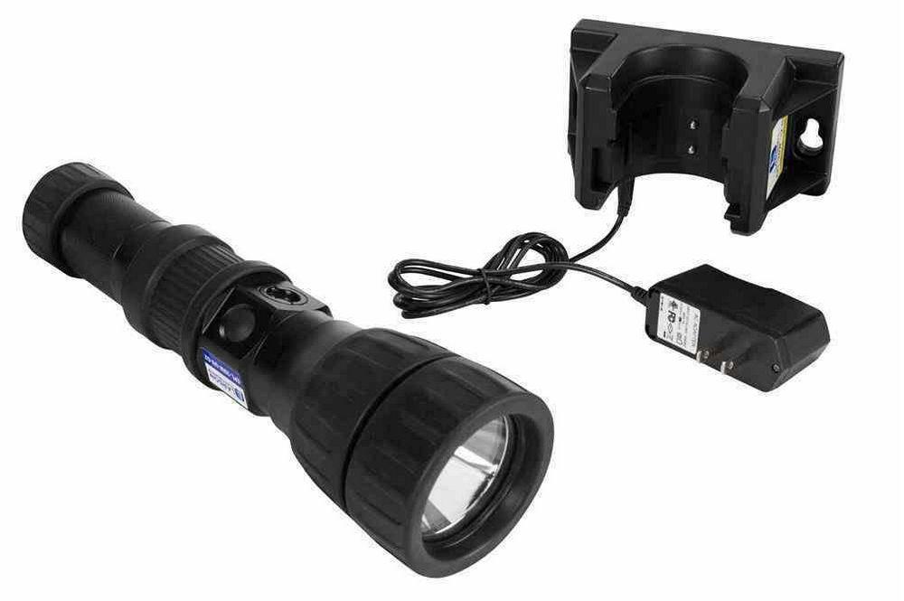 Power and Battery: This intrinsically safe light is powered by a 2,600mA battery that is rechargeable via a docking station. The power cell is removable, but not required. Charging time to full capacity is 3.75 hours, while runtime in a fully charged state is 5 hours. The explosion proof LED flashlight features a lengthy operational lifespan of 30,000+ hours. This unit is offered in the following voltage options: 120V AC, 240V AC or 12-24V (charger for docking station). Applications: Hazardous locations, aerospace, chemical processing plants, refineries, oil and gas, mining, construction, gas facilities, agricultural sites, fire fighting, task lighting, confined spaces, portable lighting, temporary lighting, emergency lighting, inspections, monitoring, security and more.