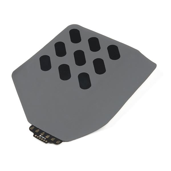 Like the Mini Pressure Sensor... but bigger! The Loomia Mega Pressure Matrix has six leads, allowing you to map which point you are at in the 3x3 matrix and get a pressure mapping over a surface. Each area has an analog readout that varies depending on the weight of the item on the pressure sensor. Generally, sensor values will read from 500K Ohms to 100 Ohms depending on the force put onto the sensor.