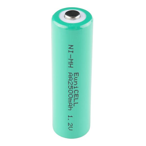 2500mAh 1.2V Nickel Metal Hydride rechargeable 'AA' batteries. [NiMH technology](http://en.wikipedia.org/wiki/Nickel_metal_hydride_battery) provides all the benefits of NiCads without the toxic ingredients and without the memory effect problem! 2500 mAh is a large capacity cell perfect for handheld, RF, and digital camera applications. We use these in everything! 26 grams per cell.