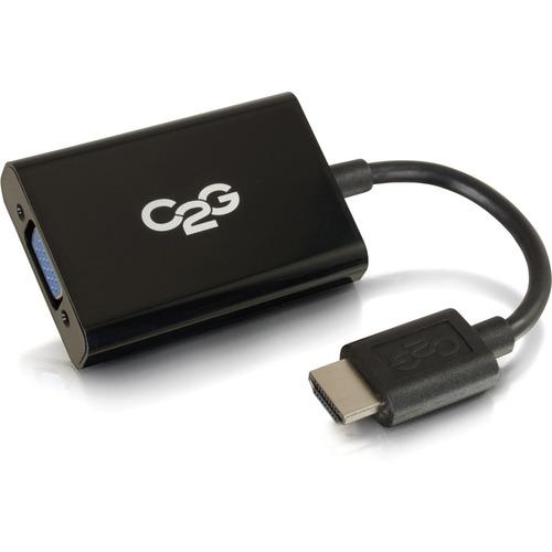 C2G HDMI Male to VGA and Stereo Audio Female Adapter Converter Dongle - 8" HDMI/Mini-phone/VGA A/V Cable for Audio/Video Device, Monitor, Notebook - First End: 1 x HDMI Male Digital Audio/Video - Second End: 1 x HD-15 Female VGA, Second End: 1 x Mini-pho
