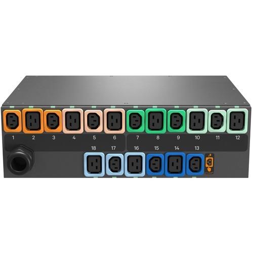 Vertiv Geist rPDU MNU3E3R1-18P993-3PS56B0H10-S 18-Outlets PDU - Switched - 3P+N+E (IP44) - 9 x U-Lock IEC 60320 C13, 9 x U-Lock IEC 60320 C19 - 230 V AC - Network (RJ-45) - 3U - Horizontal - Rack-mountable - TAA Compliant
