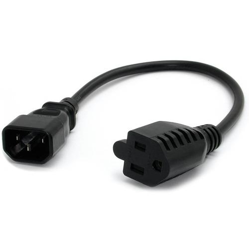 StarTech.com 1 ft Computer Power Cord IEC 320 C14 to NEMA 5-15R - For Computer, Monitor, Printer - 18 Gauge - Black - 1 ft Cord Length