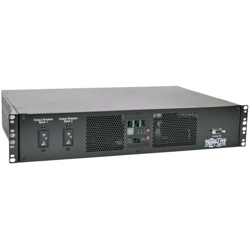 The PDUMH32HVAT 7.4kW Single-Phase 230V ATS/Metered PDU provides power monitoring and enables redundant power for network devices with non-redundant power supply configurations. Ideal for data centers and server rooms, it mounts in 2U of space in EIA-standard 19-inch racks and features 18 outlets (16 C13 and two C19) in two load banks, each bank protected by a 20A circuit breaker.Dual three-meter input cords with IEC 309 32A Blue (2P+E) plugs connect to separate primary and secondary single-phase 230V power sources. The PDU constantly evaluates the power quality of both input sources. Dynamic solid-state (TRIAC) automatic transfer switching allows the PDU to switch to the secondary source within 1-5 milliseconds should the primary source fail or become unstable to ensure your connected equipment operates without interruption. Multifunction digital display with LED indicators reports output current, voltage and kW loading information.- Single-phase IEC309 32A Blue (2P+E) input and 230V output
