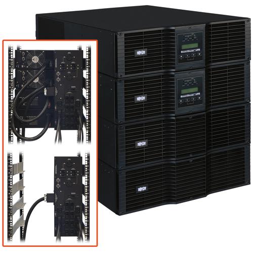Tripp Lite SU20KRT 20,000VA / 20kVA / 18,000 watt online, double-conversion UPS system offers complete power protection for critical server, network and telecommunications equipment in a 12U rack/tower configuration. This system delivers complete N+1 redundancy when used at loads up to 10kVA, and non-redundant operation at loads between 10 and 20kVA. Fault-tolerant auto-bypass prevents unexpected service interruptions during UPS overload or internal fault conditions. Included parallel PDU with manual bypass switching enables hot-swappable replacement of all major UPS system components in both N+1 and combined operating modes. Enhanced availability, fault tolerance and simple hot-swap replacement options make this UPS ideal for advanced networking applications in data centers, computer rooms, network closets and rugged industrial locations.