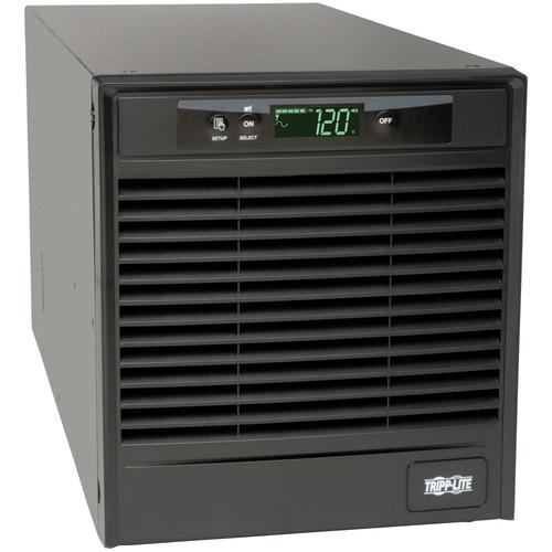 Tripp Lite Smart Online UPS systems offer high performance power protection ideal for critical server and network equipment in a variety of application environments. Online, double-conversion Uninterruptible Power Supply / UPS maintains perfectly regulated output power by continuously converting raw AC input to DC, then re-converting output back to AC. Sine wave AC output with +/-2% voltage regulation powers network equipment continuously, even during severe brownouts and overvoltages, all without depleting UPS battery reserves. Maintains battery-derived AC output during power failures with zero transfer time. Extended runtime options available. Interactive LCD interface reports UPS operating mode, detailed UPS and site-power data, plus enables a variety of UPS setup and configuration options. Highly efficient operation in optional economy mode saves BTU heat output and energy costs. Network management interfaces support communications via USB, RS-232, contact-closure and optional SNMPWEBCARD network interface. Built-in DB9 port offers both enhanced RS-232 data and basic contact closure monitoring ability. HID-compliant USB interface enables integration with built-in power management and auto shutdown features of Windows and Mac OS X. Includes PowerAlert monitoring software and complete cabling. Emergency Power Off (EPO) interface. LED display reports UPS operating mode, line power availability, battery mode operation, inverter operation, ECO mode status and output power availability. Audible alarm with push-button momentary alarm-cancel and silent-mode LCD configuration options. Programmable self-test. Fault-tolerant auto-bypass mode. Battery independent restart. Field-replaceable, hot-swappable internal batteries and external battery packs.- 3000VA / 3kVA / 2700 watt on-line double-conversion tower UPS