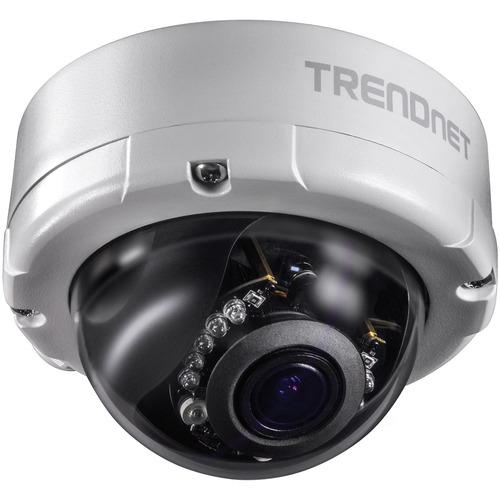 TRENDnet's Indoor/Outdoor 4MP H.265 Motorized Varifocal PoE IR Dome Network Camera, model TV-IP345PI, provides day and night surveillance with a night vision range of up to 30 meters (98 ft.). A built-in 2.8 - 12mm motorized varifocal lens allows you to adjust the field of view to meet your installation needs. This varifocal IP camera delivers year-round surveillance with an IP67 weather rated housing to withstand outdoor environments. Record up to 4MP HD video at 20 fps in a space saving H.265 compression format. View live video from the varifocal IP camera with included complimentary software and mobile apps.