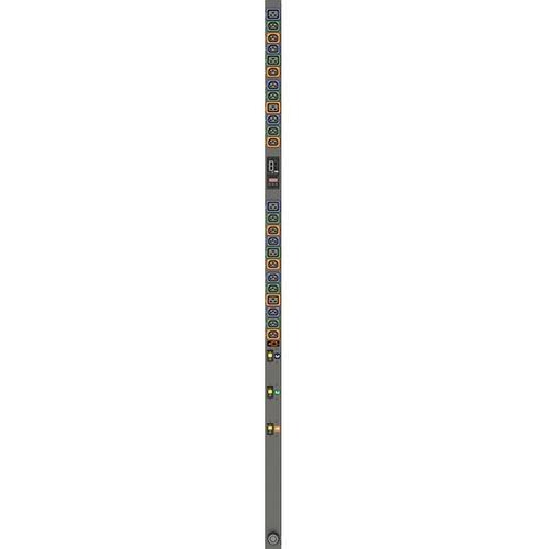 The Vertiv Geist Switched Rack PDU VP8965 is a 30A, 120/208V WYE 0U vertical rack power distribution unit (PDU) with input power monitoring and outlet level switching. The VP8965 has 18 IEC C13 and 6 IEC C19 locking receptacles and a NEMA L21-30P plug providing 8.6kW of power capacity. This Switched rPDU allows you to turn off receptacles to avoid accidental overloads and power cycle equipment remotely to reboot unresponsive critical IT equipment. The hot-swappable Interchangeable Monitoring Device (IMD) displays current on the local LED display. It also supports Visible Light Communication (VLC) technology so you can view complete power usage data from a mobile device with the Vertiv rPDU Scanner application. The IMD includes ports for serial communication, environmental monitoring, and dual ethernet ports. Simplify management of multiple PDUs with fault-tolerant daisy chaining or IP aggregation capabilities.- Switched Rack PDUs simplify power management and allow you to remotely reboot unresponsive IT equipment