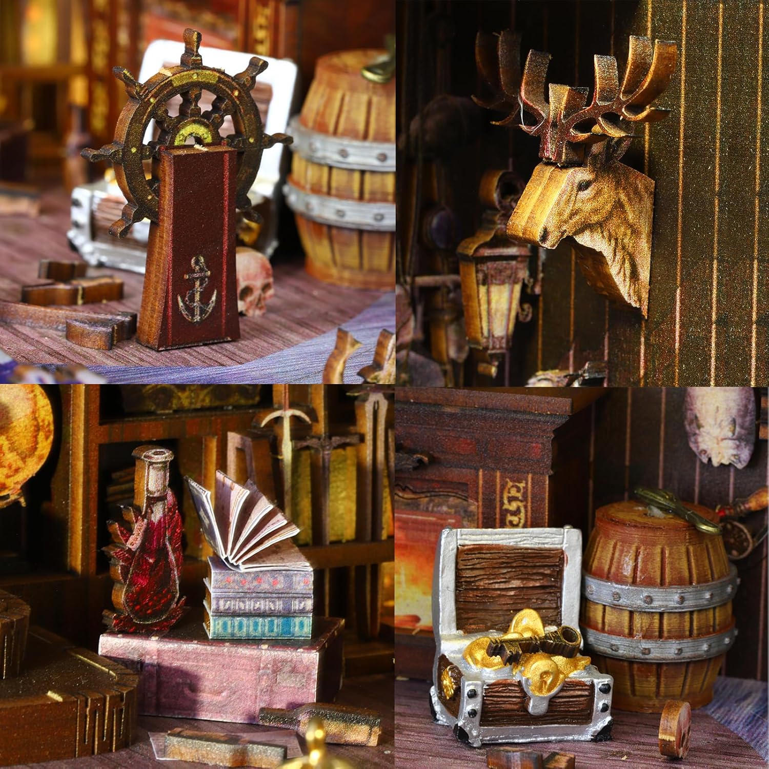 Transform your bookshelf into a portal to another world. The pirate-themed book nook is filled with intricate details—from ship masts to weathered wooden planks—and offers a sense of wonder that draws every eye.