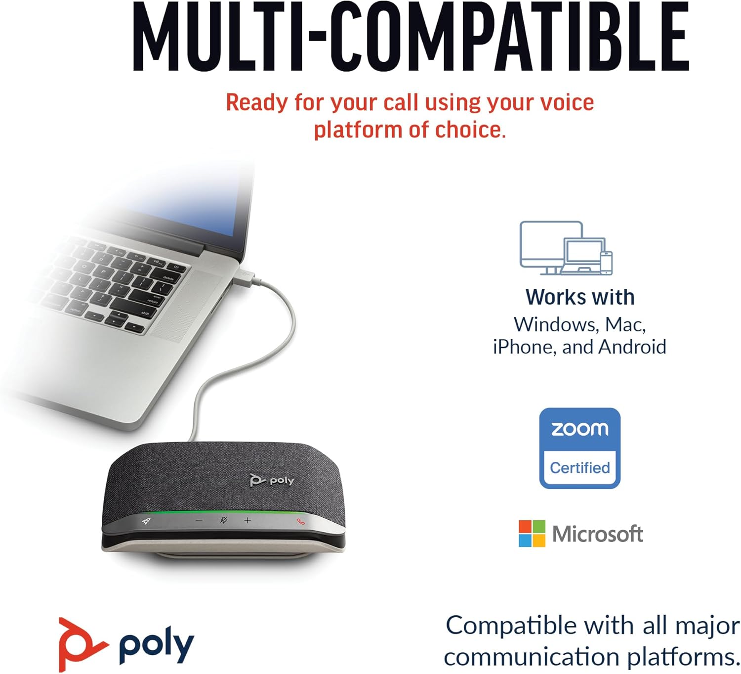 Poly Sync 20 USB-C Personal Portable Smart Speakerphone (Plantronics) – Noise/Echo Reduction -Works w/Teams, Zoom, PC, Mac, Mobile – Amazon Exclusive