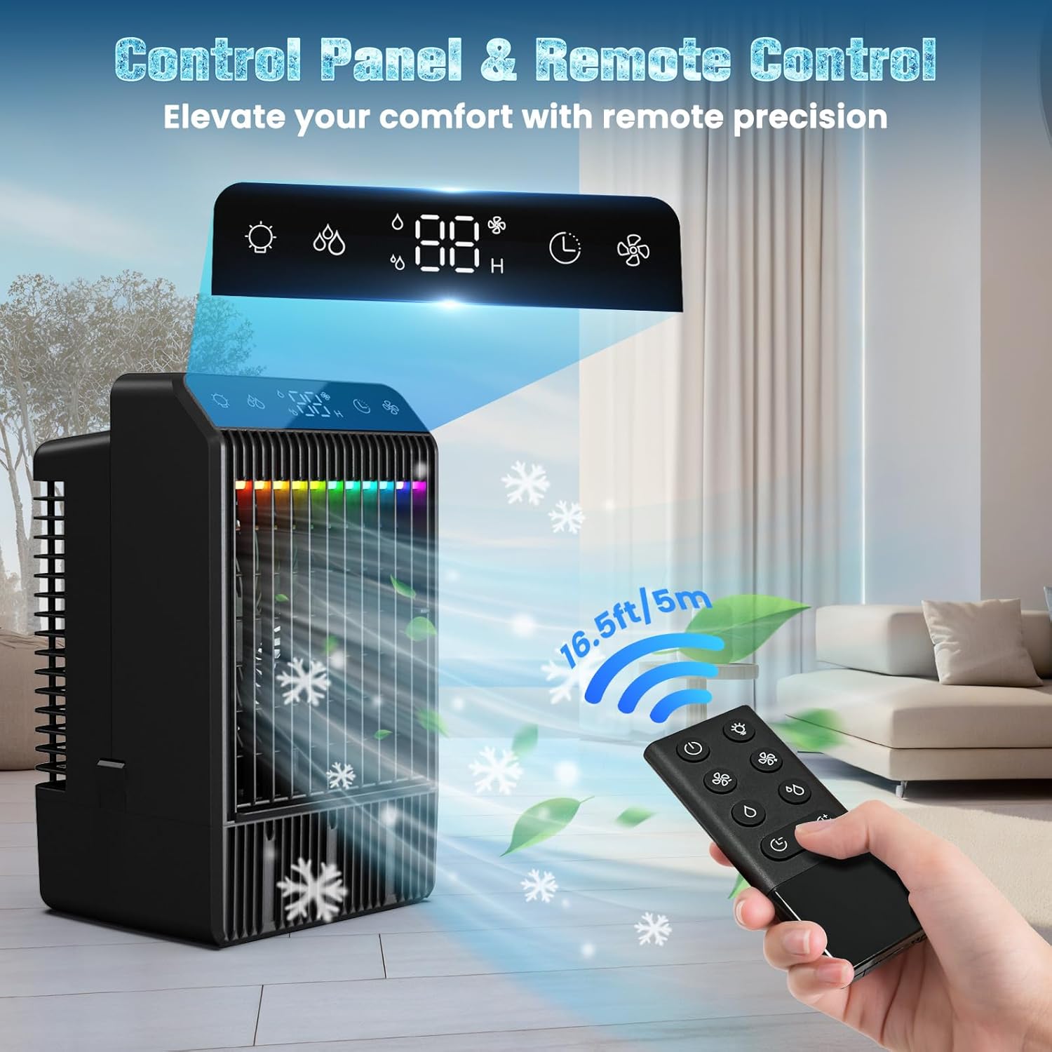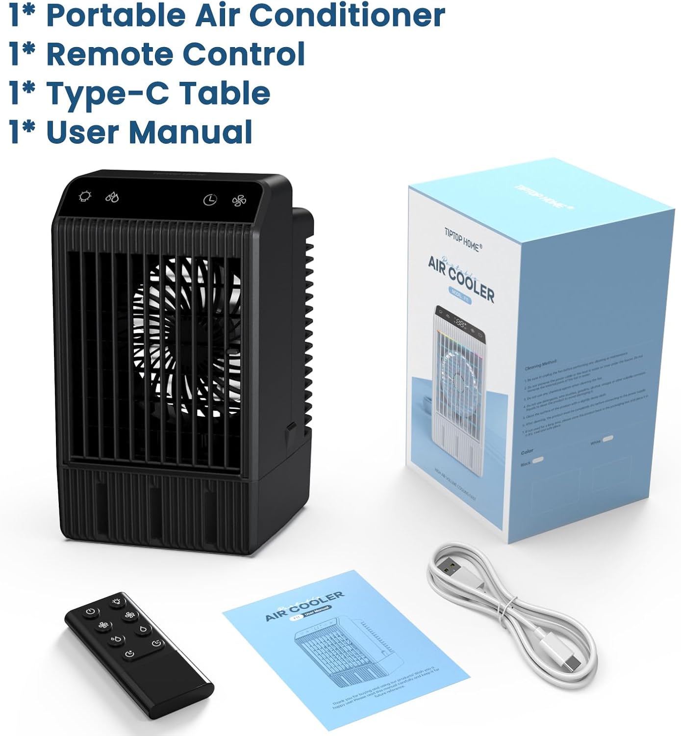 Portable Air Conditioner, 2025 Upgraded Evaporative Mini Room Air Conditioners Cooling Fan, 2~12H Timer, Portable AC Unit Air Cooler with 1000ML Water Tank, AC Portable for Room, Office, Car