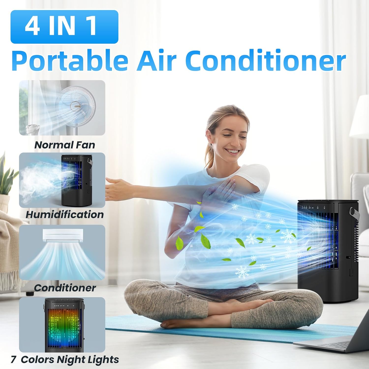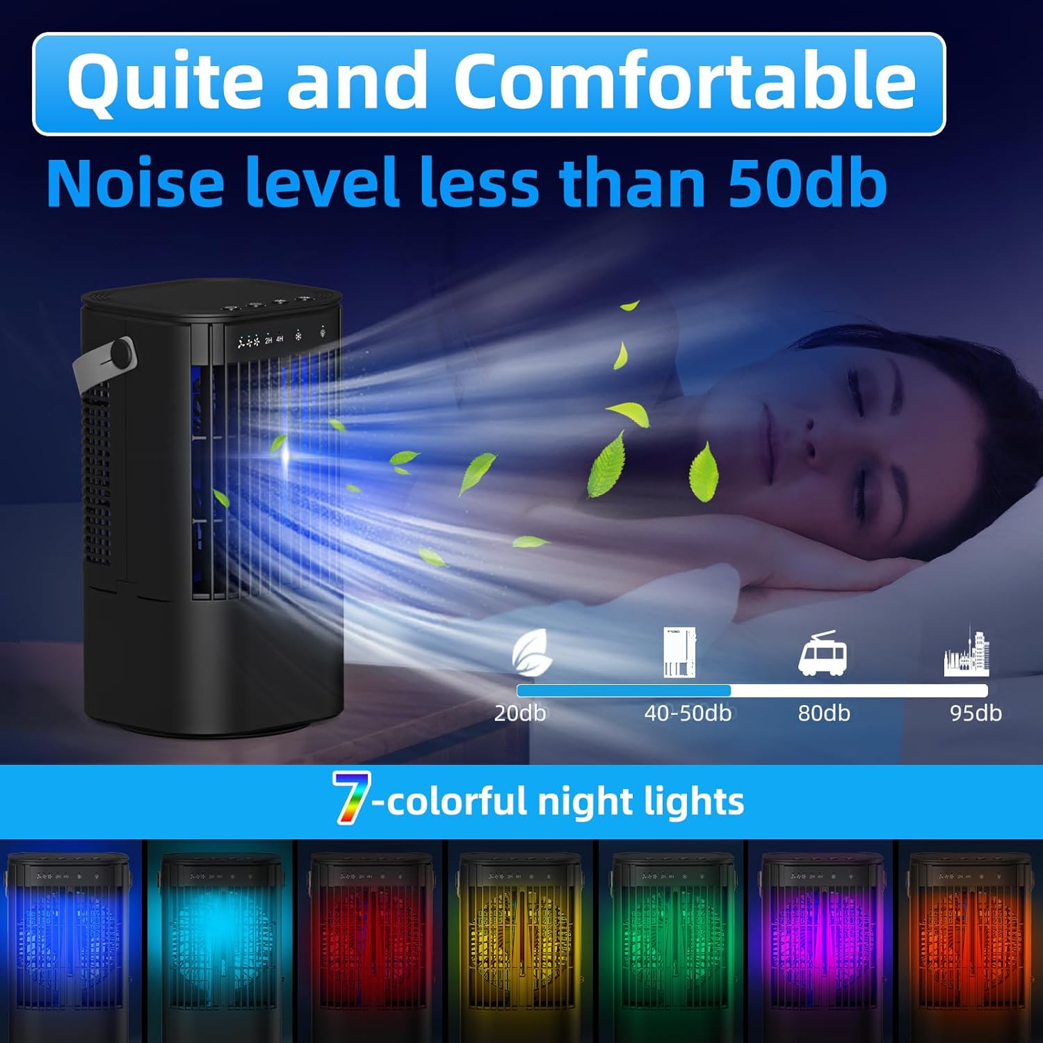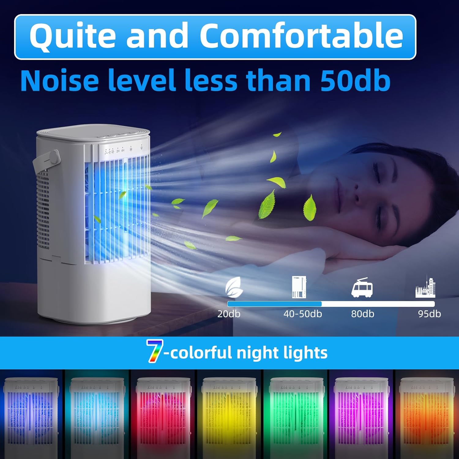 Beat the heat in style with Purilite Select’s Mini Air Conditioner — the perfect personal cooling companion for your bedroom, office, dorm, camping trip, or desktop. Designed for efficient, whisper-quiet performance, this compact powerhouse offers more than just cool air — it brings comfort, calm, and a touch of ambiance wherever you need it most.
