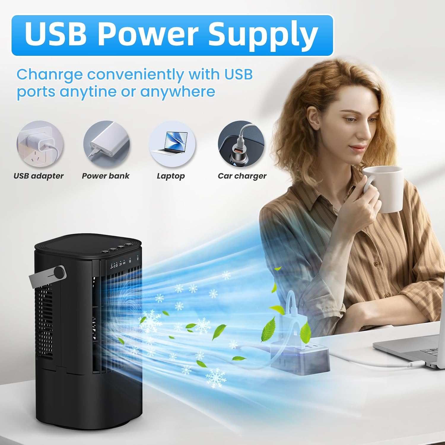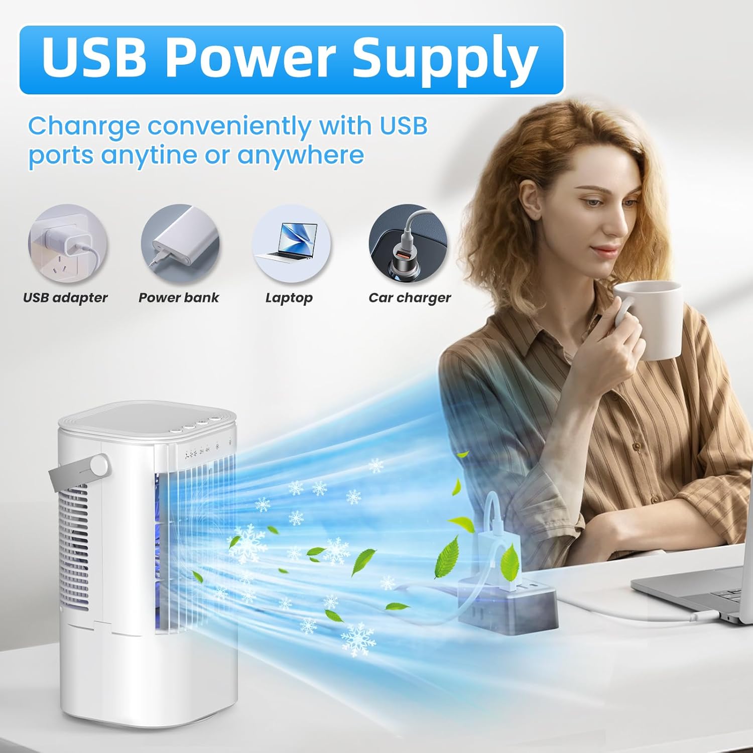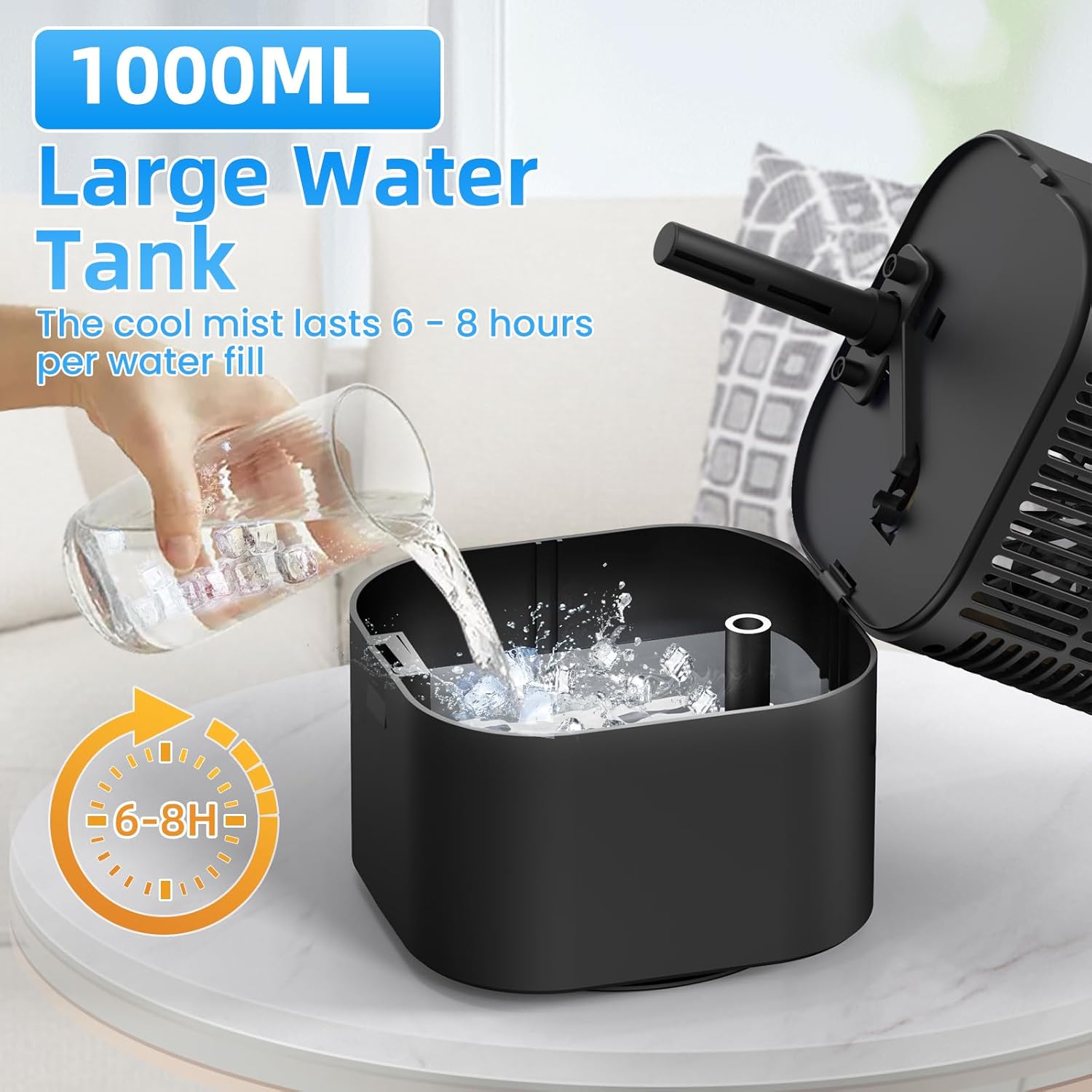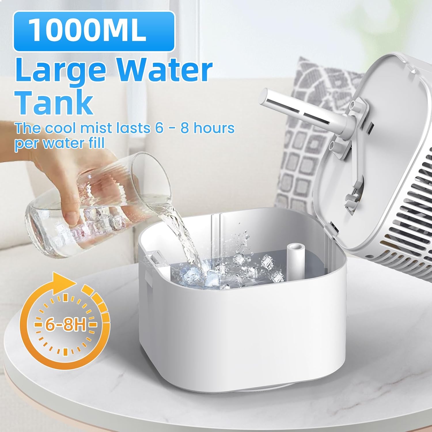 Compact enough for any surface and light enough to carry from room to room, this unit is designed for simplicity. Just fill the tank, power it via USB, and select your settings. Whether you're indoors or outdoors, comfort is always within reach.