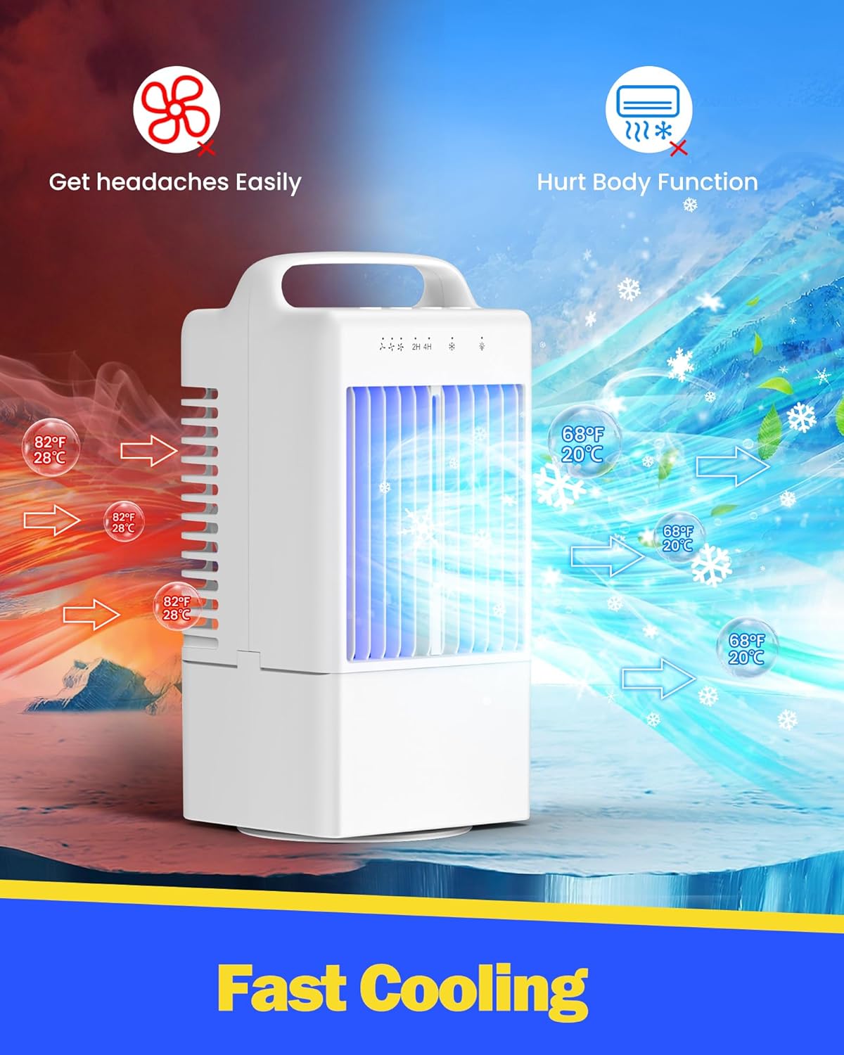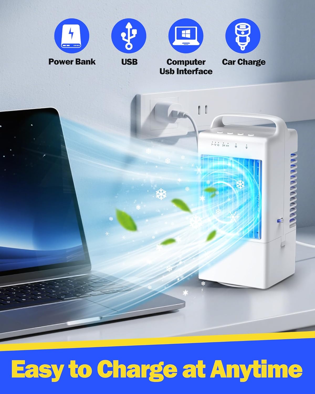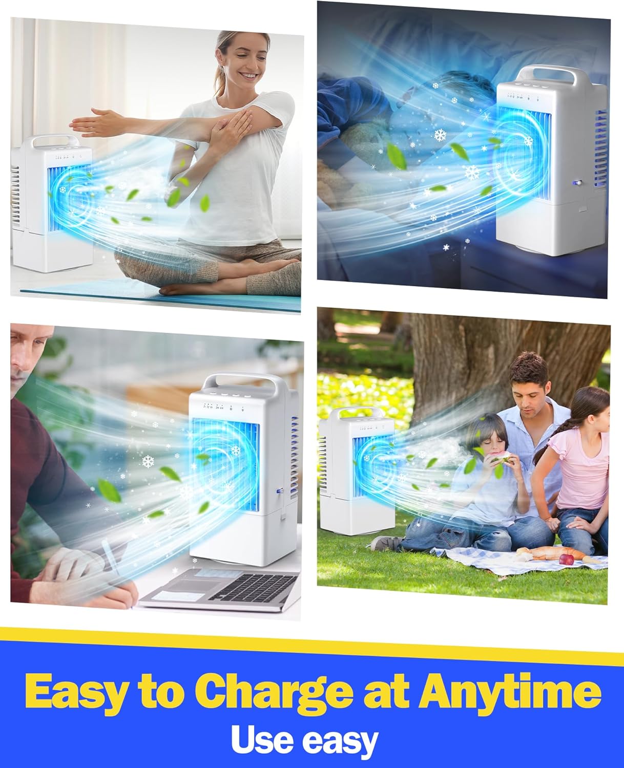 Whether you're working at your desk, relaxing in bed, or out camping, this portable AC delivers a fast blast of cold air in just 3 seconds. Add water or ice to the 1000mL tank for even more powerful, moisture-rich cooling.