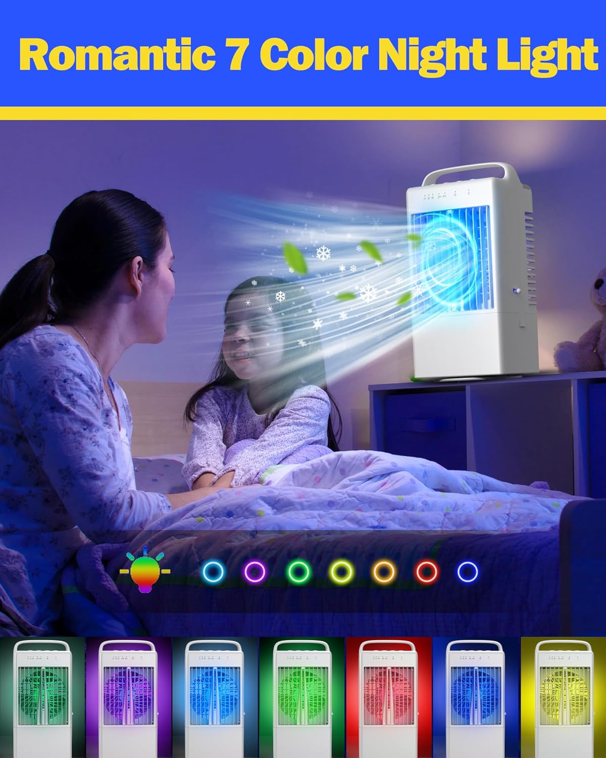 Enhance your room’s ambiance with the built-in 7-color LED light—great as a night lamp, desk accent, or decorative mood lighting.