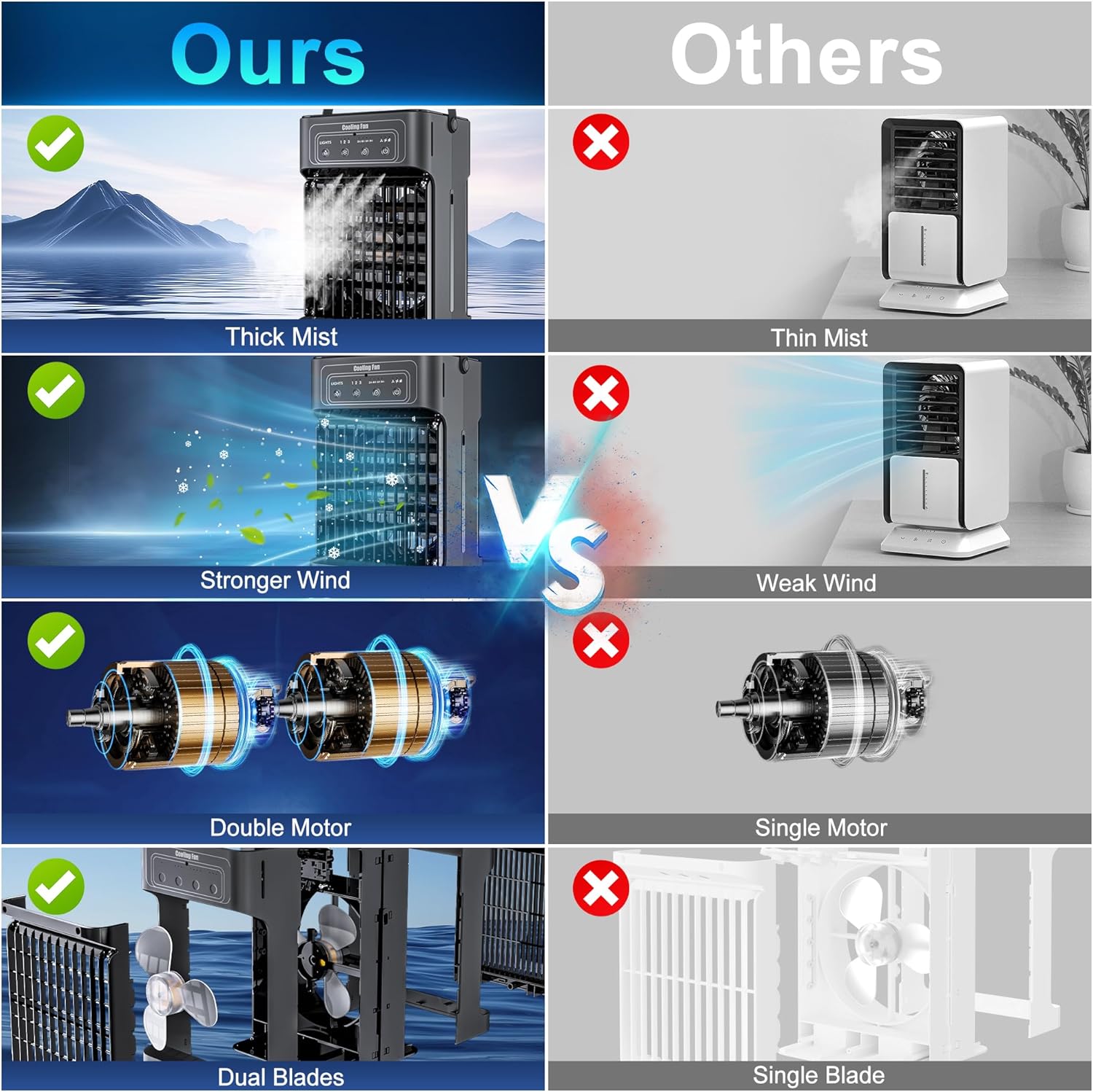 Equipped with upgraded dual fan blades, this unit delivers stronger airflow and higher efficiency while reducing noise and power consumption. It quickly transforms ice water into refreshing cool air—perfect for those sweltering summer days.