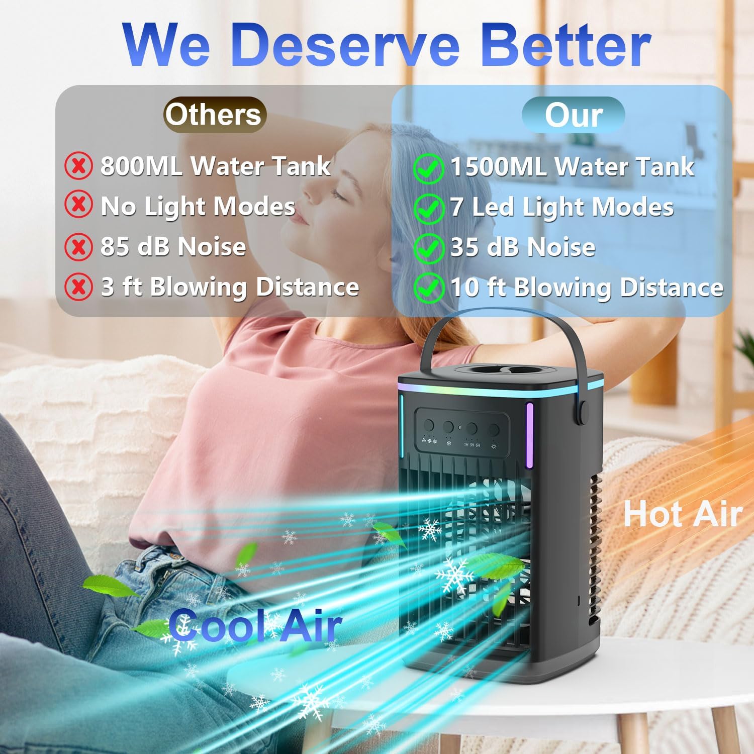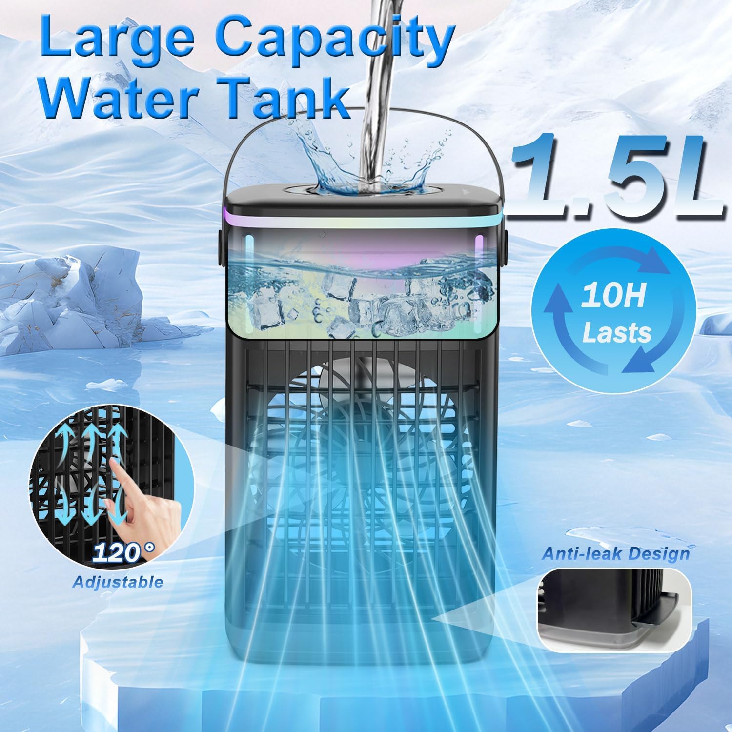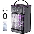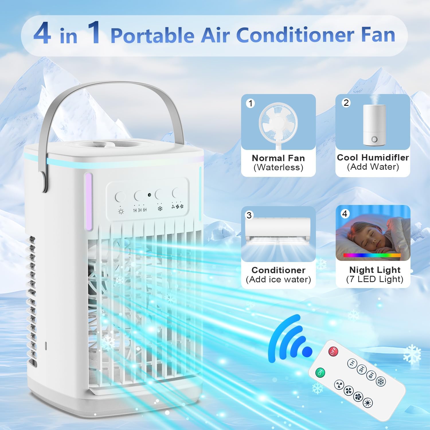 Portable Air Conditioners Fan with Remote, 4-in-1 Portable AC with 1500ml Water Tank, 3 Wind Speeds, 6H Timer, 2 Cool Mist, 7 Lights, Personal Mini Air Conditioner for Room Bedroom Office (Black)