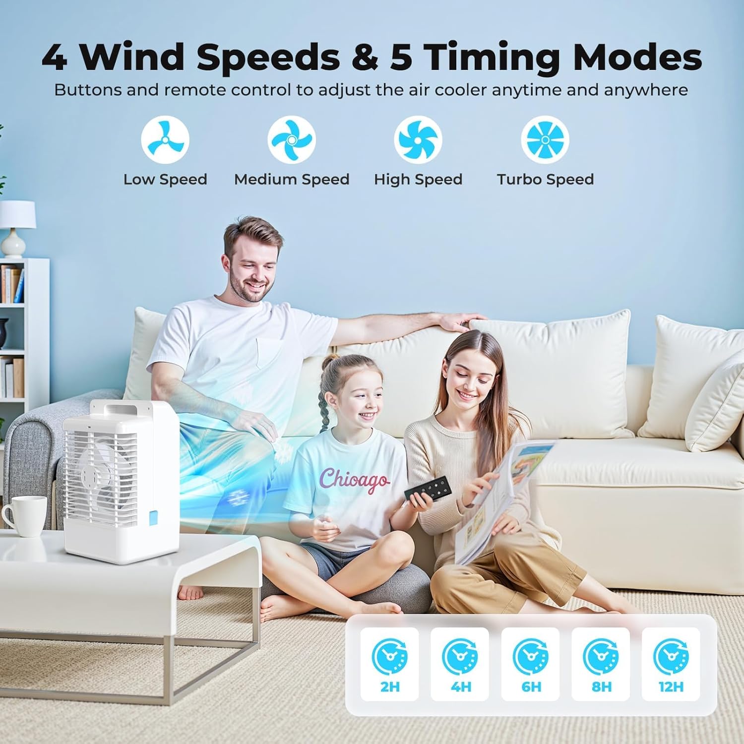 - ❄️4-SPEED FAN ADJUSTMENT: The 2025 air cooler delivers powerful airflow with a maximum speed of up to 4 meters per second. With four adjustable fan speeds, it meets different needs and provides a quick, comfortable cooling experience to help you stay refreshed during the hot summer months