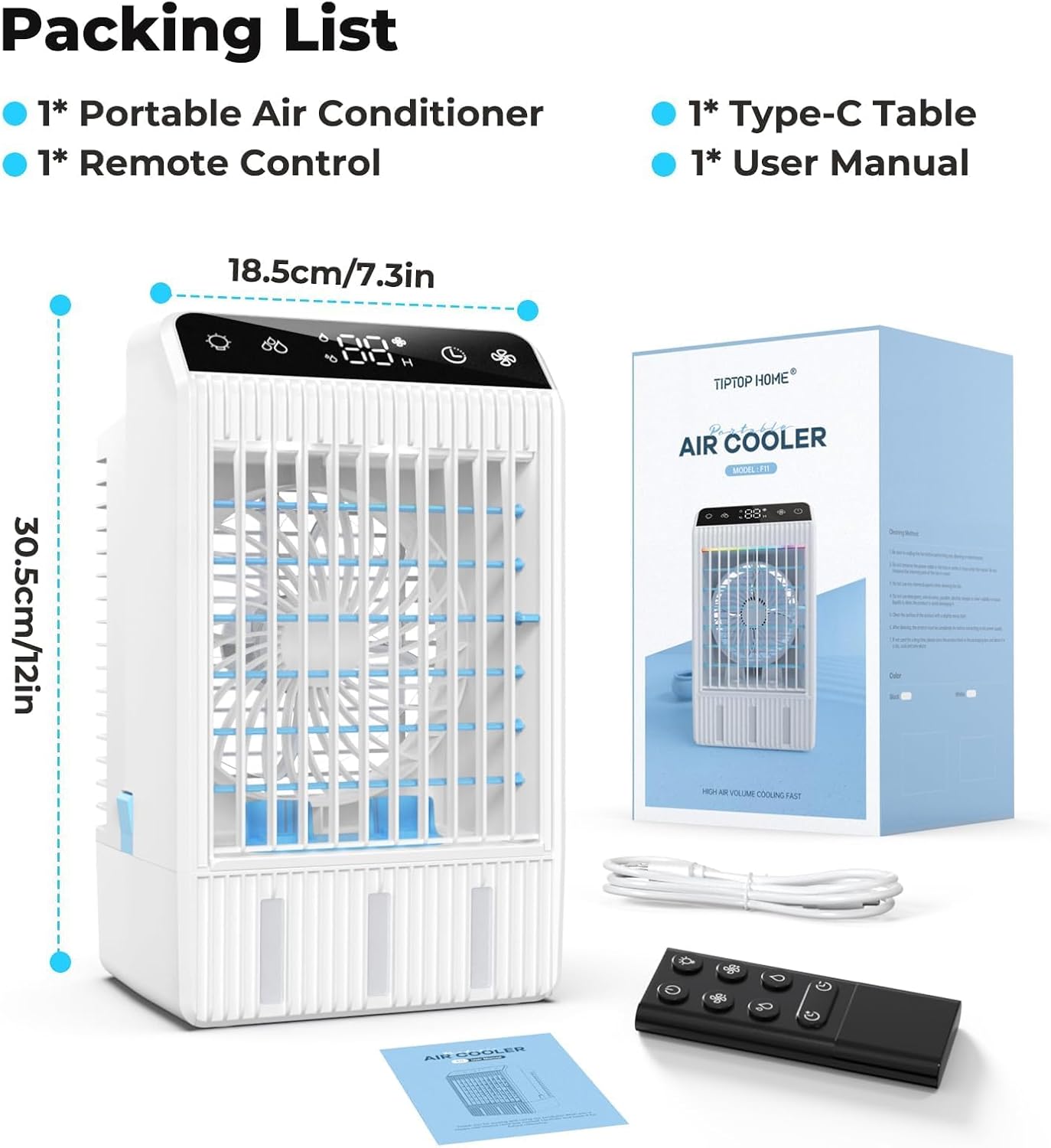 ❄️REMOTE CONTROL & TIMER FUNCTION: Our desk air conditioner is Equipped with a remote control and timer function (2, 4, 6, 8, 12 hours), you can easily set the working duration, with automatic shutdown for safety. Its compact design saves space and makes it suitable for use in the bedroom, living room, office, or study