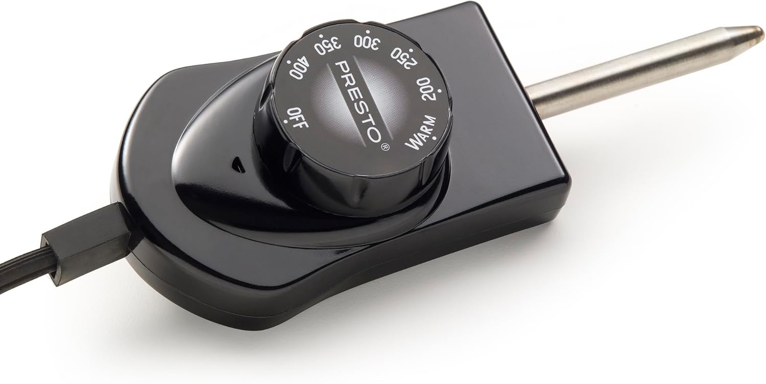 The extra-large Presto® Slimline™ griddle makes enough food to feed the entire family and has a low-profile design for super easy storage. With a PFAS-free ceramic surface, you can enjoy worry-free nonstick cooking with all your favorite breakfast, lunch, and dinner favorites. Make bacon and eggs, sausage, and French toast on the big 13- x 22-inch cooking surface. It also cooks perfect grilled cheese sandwiches every time, as well as Reubens, burgers, and chicken fillets, and the removable tray catches any drippings. The Control Master® heat control maintains the selected cooking temperature automatically, and with the heat control removed, the griddle is fully immersible for cleaning.