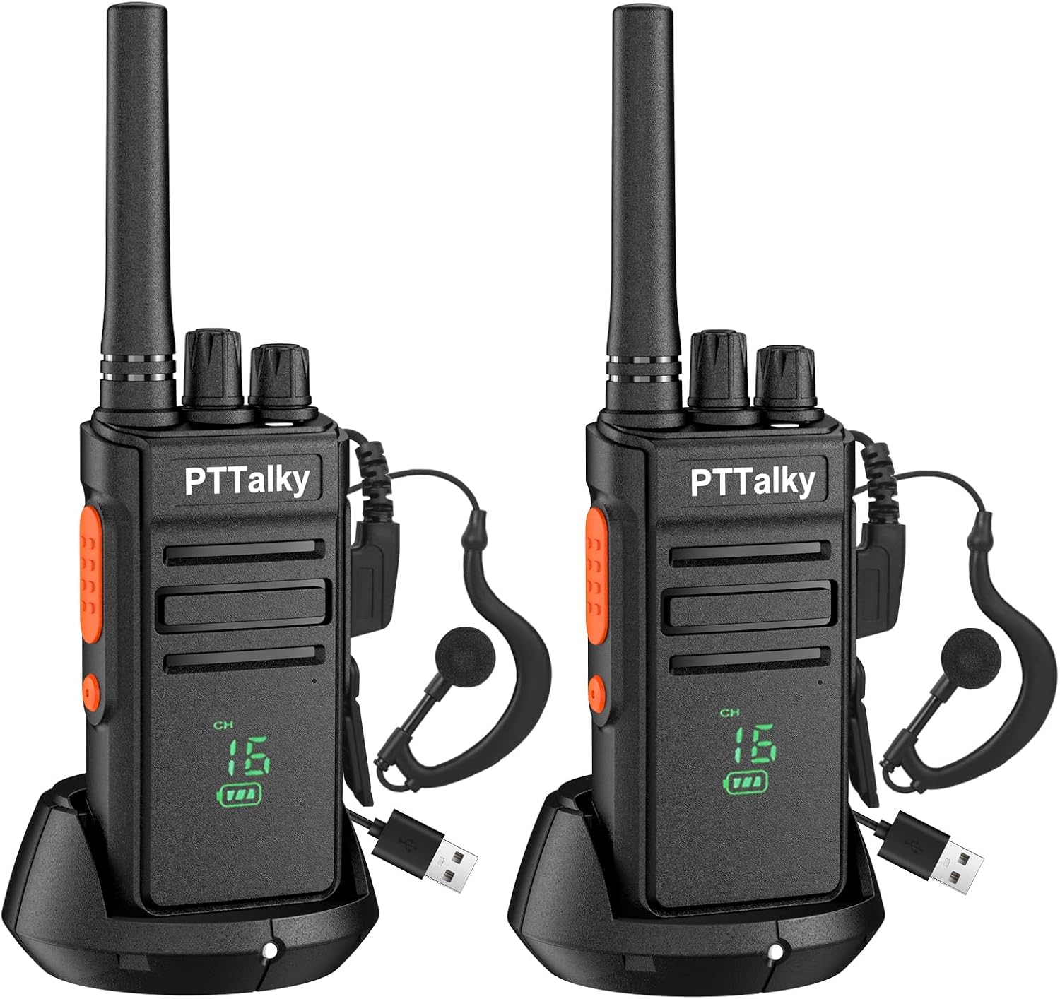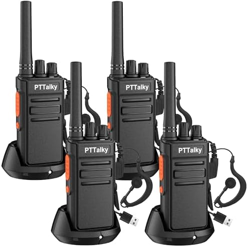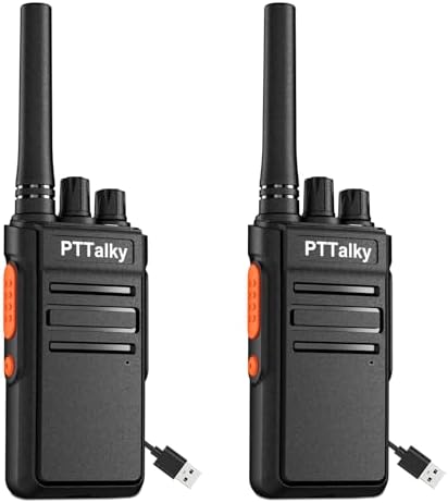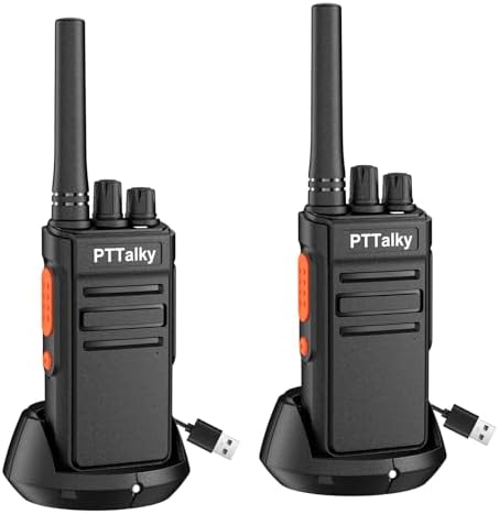 PTTalky FR1 Walkie Talkies for Adults Long Range, Rechargeable 2-Way Radio Walkie Talkie with Charge Cable Charger Dock for Hunting Commercial Cruises (2 Pack)