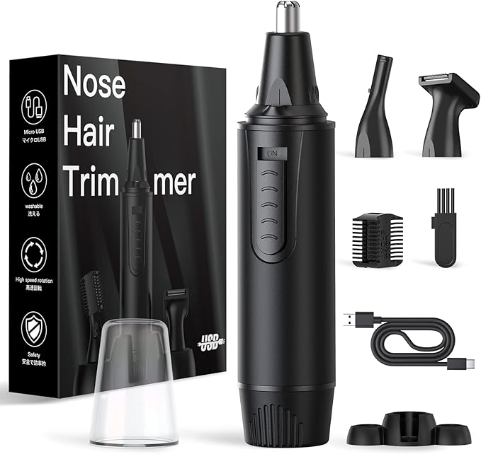 • 8-in-1 Grooming Kit: Nose trimmer, ear trimmer, eyebrow trimmer, sideburn/face trimmer—customize your grooming with interchangeable heads.