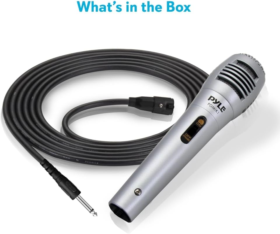 Pyle Professional Dynamic Vocal Microphone - Moving Coil Dynamic Cardioid Unidirectional Handheld Microphone with ON/OFF Switch Includes 15ft XLR Audio Cable to 1/4'' Audio Connection - PDMIC59