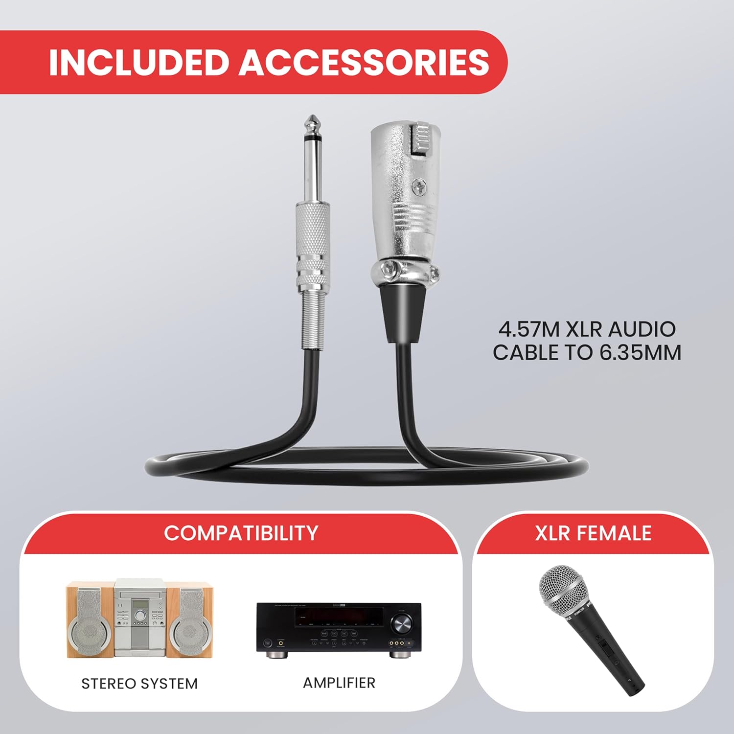 | Included components | 15' ft. Audio Cable (XLR to 1/4'' Cable), Dynamic Microphone |
