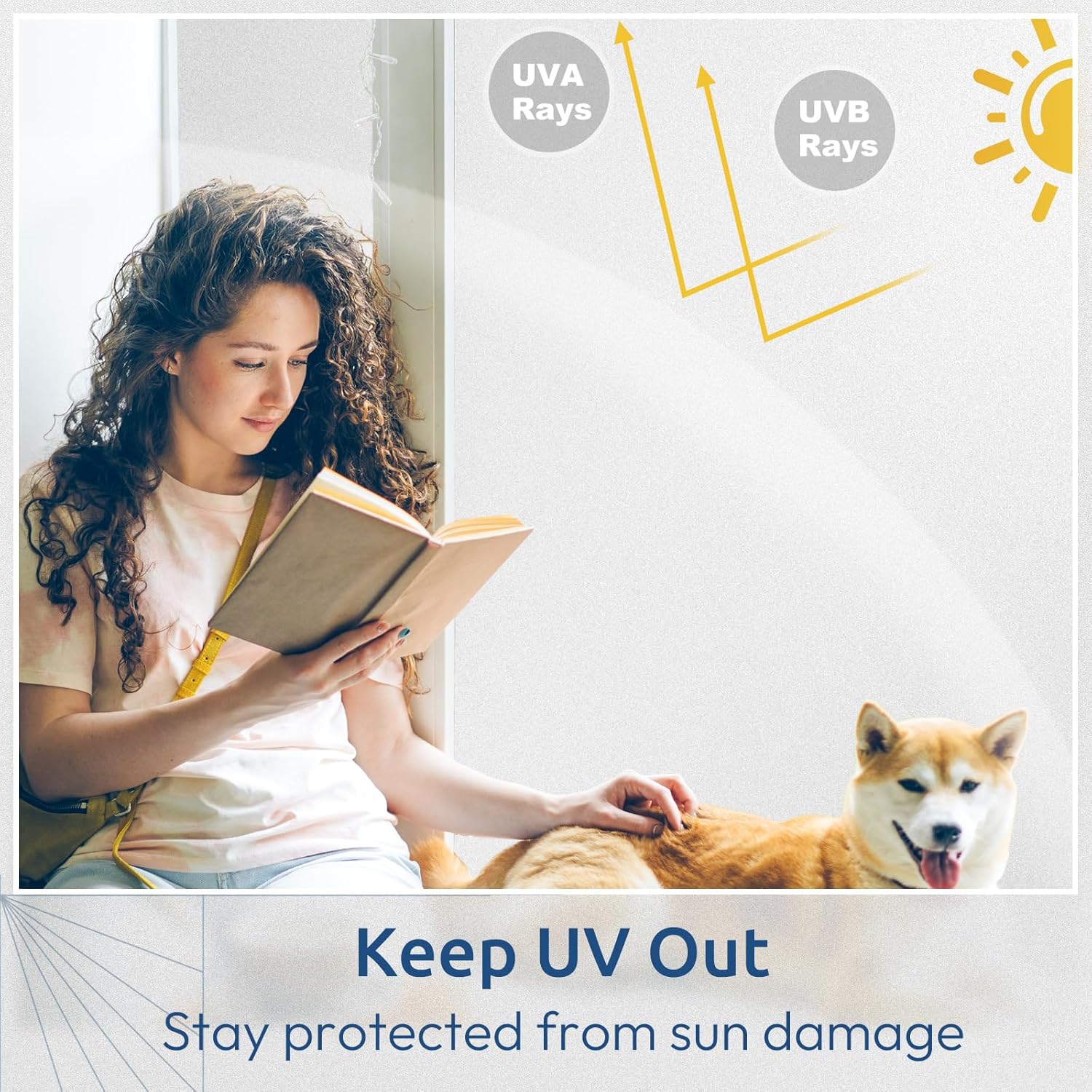 - UV Blocking, Glare Control: This privacy window film helps resolve many troublesome problems in the hot summer days - it filters strong dazzling sunlight glares, blocks out 84% UVA rays and 99% UVB rays, and protects your skin from harmful radiation exposure as well as reduce the fading and aging of furniture, making your home comfortable to live in